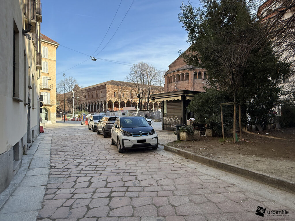 Giungiamo con il nostro giretto fotografico in via Larga, dove finalmente si realizza un sogno: la riqualificazione dello slargo in cui via Larga incrocia via Chiaravalle, via Albricci e via Pantano, da sempre utilizzato, anche questo, come un brutto parcheggio. Dopo la realizzazione della torretta dell’ascensore nel nuovo corridoio del prolungamento dell’uscita della stazione M3 Missori in questo punto, anche il piazzale è stato sottoposto a una riqualificazione totale, con nuove aiuole, alberature e panchine, diventando di fatto un’area pedonale.