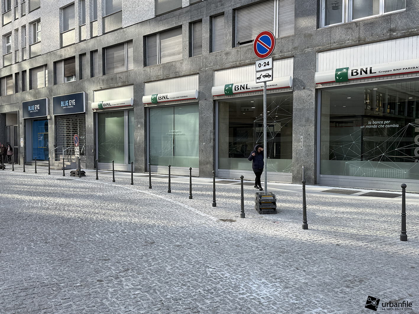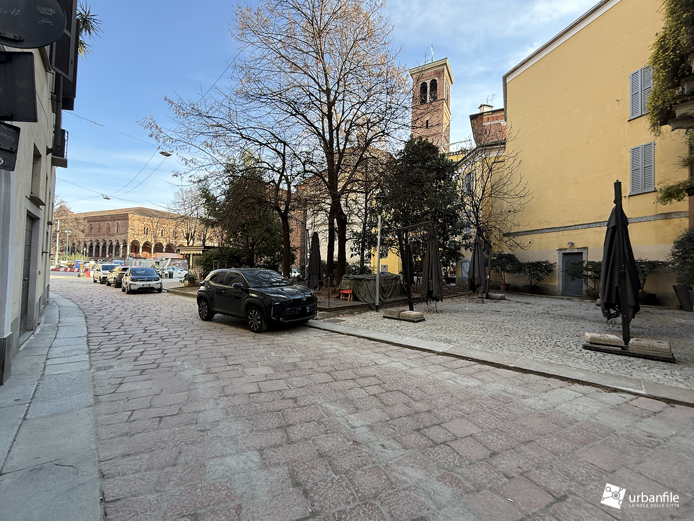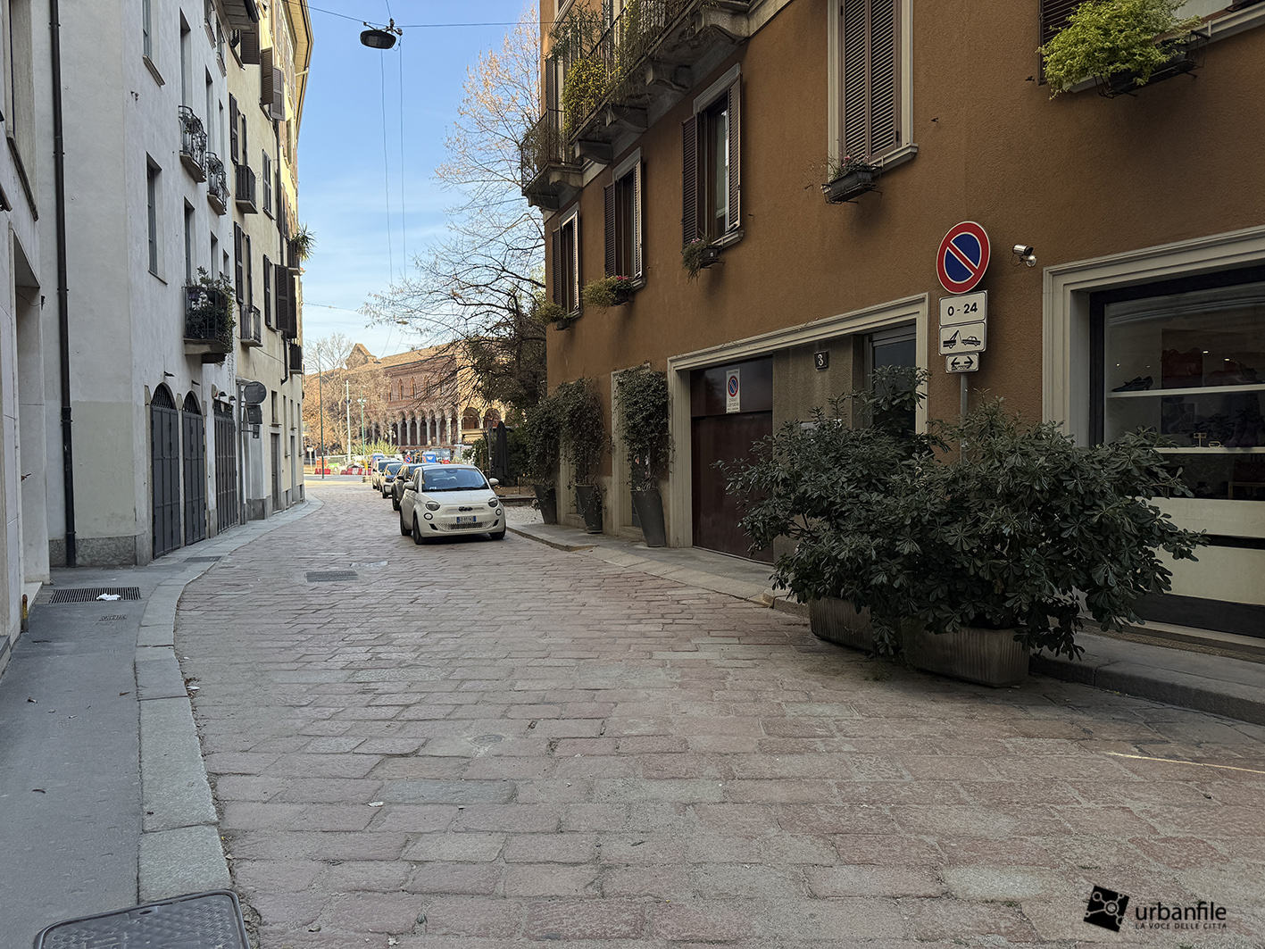 Giungiamo con il nostro giretto fotografico in via Larga, dove finalmente si realizza un sogno: la riqualificazione dello slargo in cui via Larga incrocia via Chiaravalle, via Albricci e via Pantano, da sempre utilizzato, anche questo, come un brutto parcheggio. Dopo la realizzazione della torretta dell’ascensore nel nuovo corridoio del prolungamento dell’uscita della stazione M3 Missori in questo punto, anche il piazzale è stato sottoposto a una riqualificazione totale, con nuove aiuole, alberature e panchine, diventando di fatto un’area pedonale.