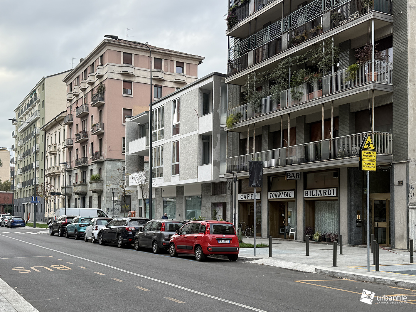 Già la scorsa estate avevamo potuto notare la presenza di questo piccolo cantiere che vede la ristrutturazione del grazioso edificio di due piani di via Vincenzo Foppa 24 e 26. Un palazzo ad uso uffici abbinato ad una palazzina con laboratori (potrebbe essere opera dell’ingegnere Bruno Bacchelli, ma non abbiamo avuto conferme).