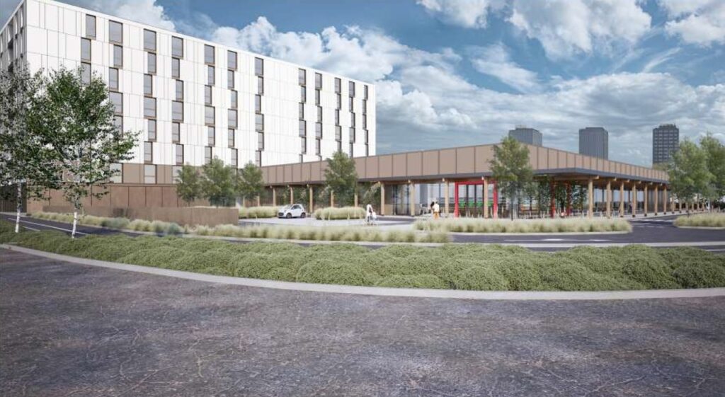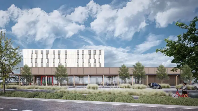 Il progetto prevede la realizzazione di un edificio adibito a studentato, alto 28 m – pari a nove piani – per un volume di circa 45mila mc. L’immobile accoglierà circa 350 posti letto per studenti del Bo, con una quota di posti letto riservata all’Esu, un supermercato di 15mila mc e 1 800mq, alto al massimo 12 m, il quale sarà realizzato come piastra sotto allo studentato. Elemento fondamentale del progetto è l’attenzione alla sostenibilità ambientale. Verranno realizzati infatti tetti verdi, superfici permeabili nei parcheggi, ampie aree alberate e la realizzazione di una corte interna verde nell’edificio principale, pensata come spazio di aggregazione e benessere.