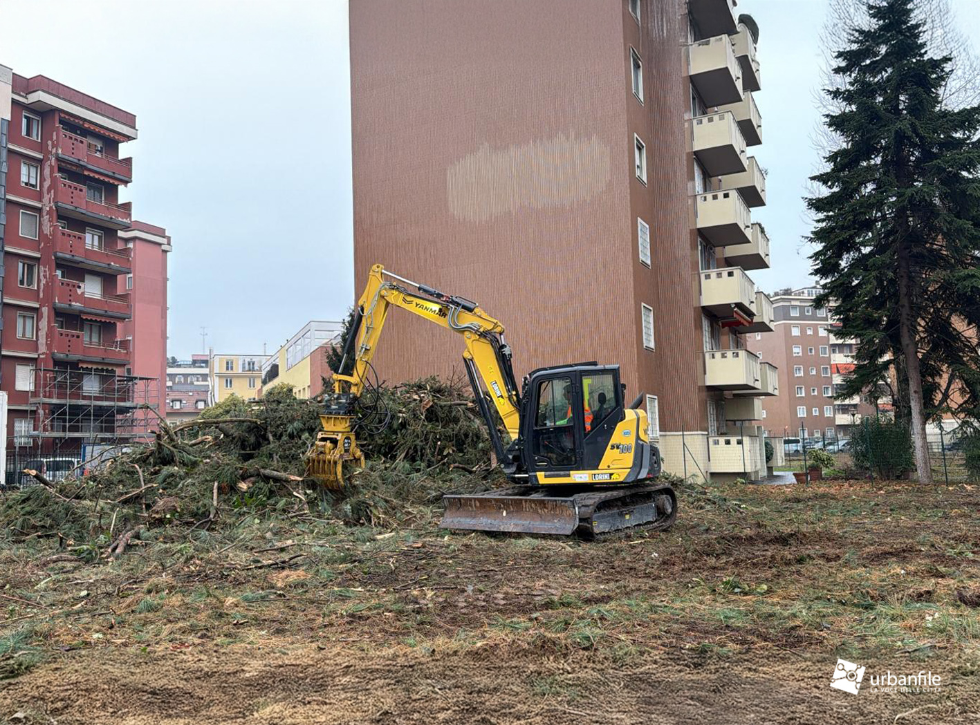 Gennaio 2026. Questa città, a tratti, sembra senza controllo: predica la salvaguardia del verde e la necessità di incrementarlo (il cosidetto greenwashing), ma nei fatti, troppo spesso, il verde urbano scompare sotto i colpi delle ruspe, un po’ ovunque. Solo lo scorso settembre avevamo raccontato come, in via Cornelio Tacito 7, a Calvairate, esistesse un’area verde privata lasciata per anni a uno sviluppo spontaneo, tanto da assumere l’aspetto di un vero e proprio boschetto. Un polmone verde incastonato tra alti condomìni e condiviso con un edificio con ingresso da via Tertulliano 38. Oggi quel boschetto è stato in parte cancellato: nelle ultime ore è stato infatti dimezzato con l’avvio delle operazioni di bonifica.
