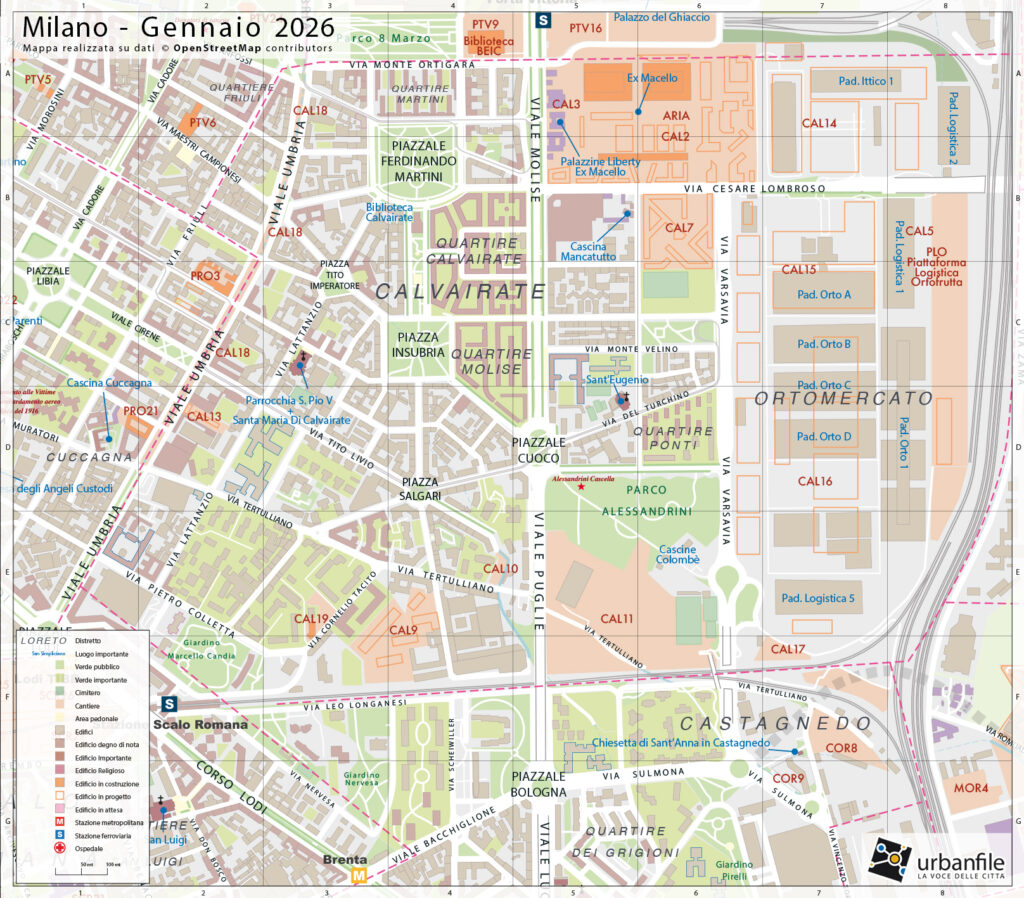 - Calvairate, via Tacito, Boschetot, Verde, Scalo Romana, Porta Romana, Via Tertulliano, Cantiere, Bonifica
