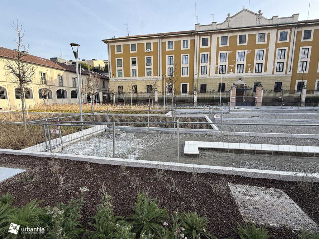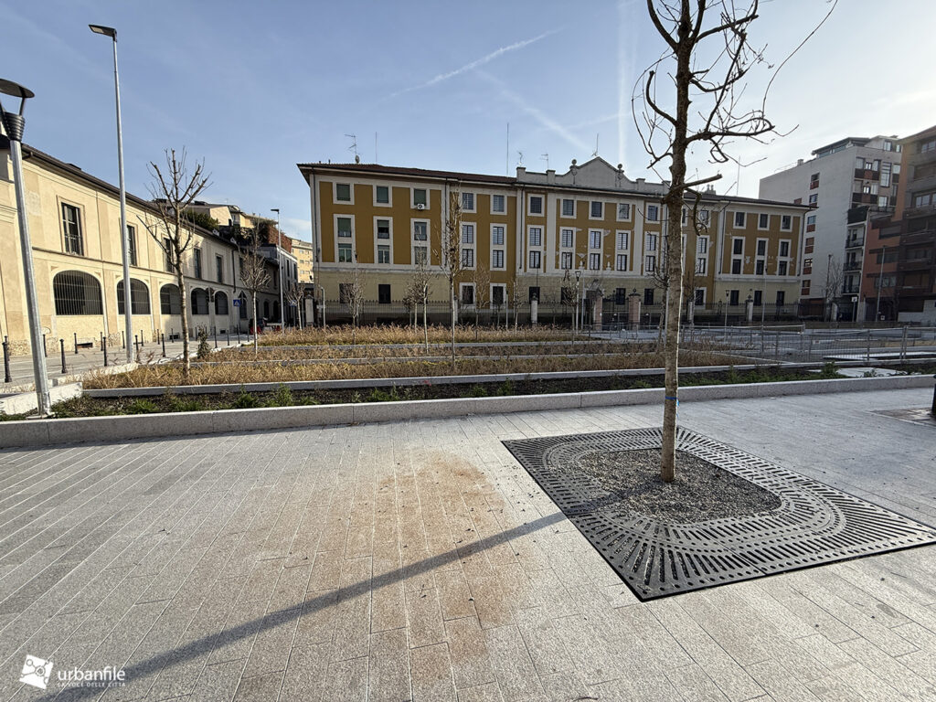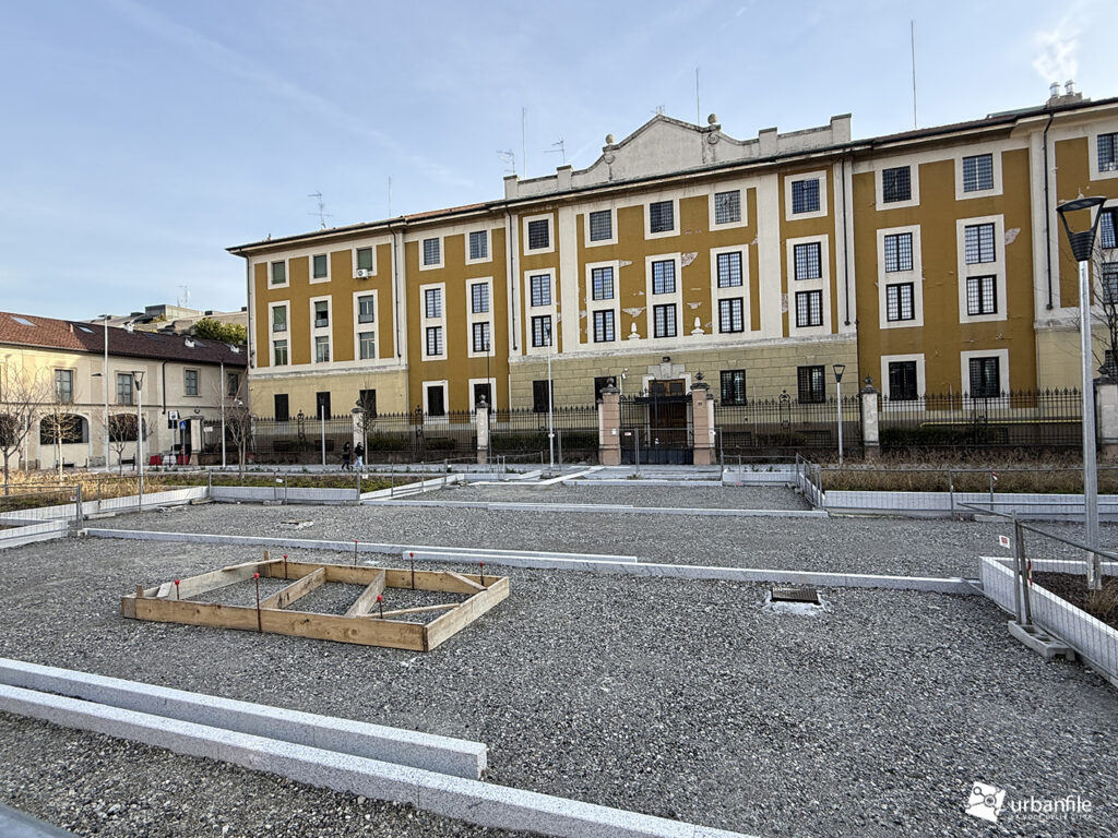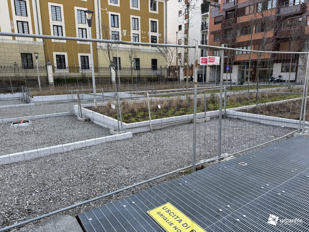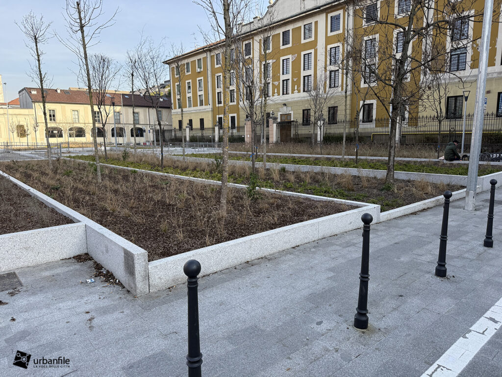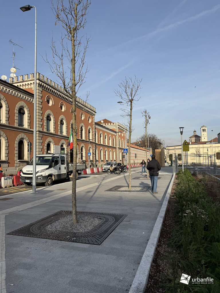 I lavori vedono il ripristino dell’area centrale con il nuovo disegno che sta caratterizzando molti interventi dopo il cantiere M4: aiuole a vasca a gradoni, con posa delle prime alberature. Gli abitanti della zona hanno cominciato a chiamare il nuovo disegno delle aiuole: “il campo di bocce”.