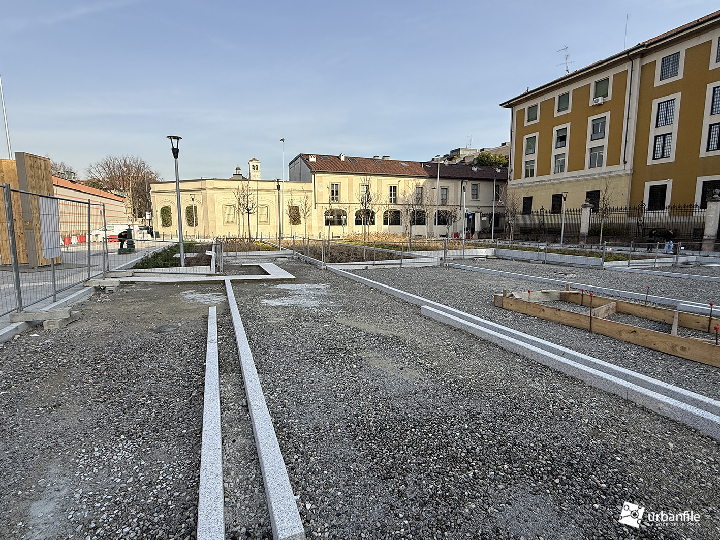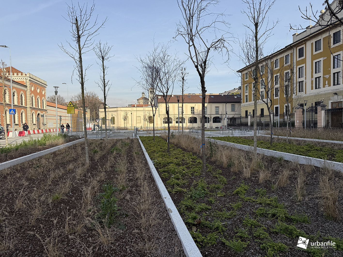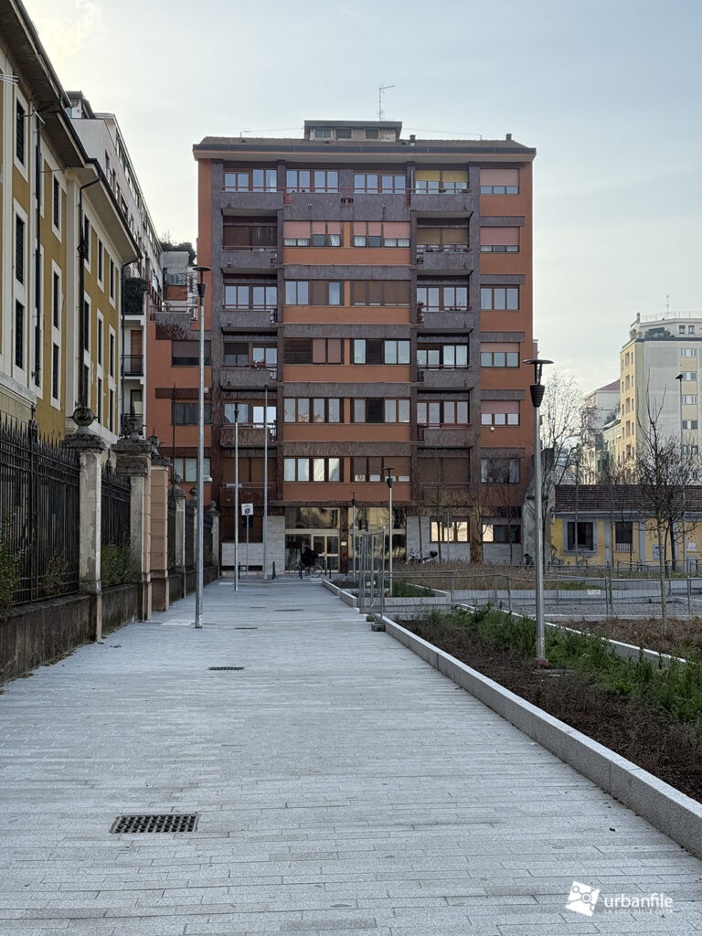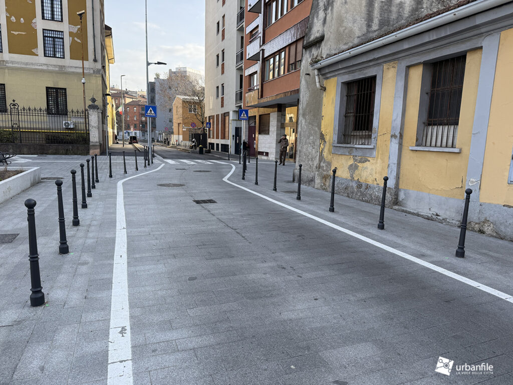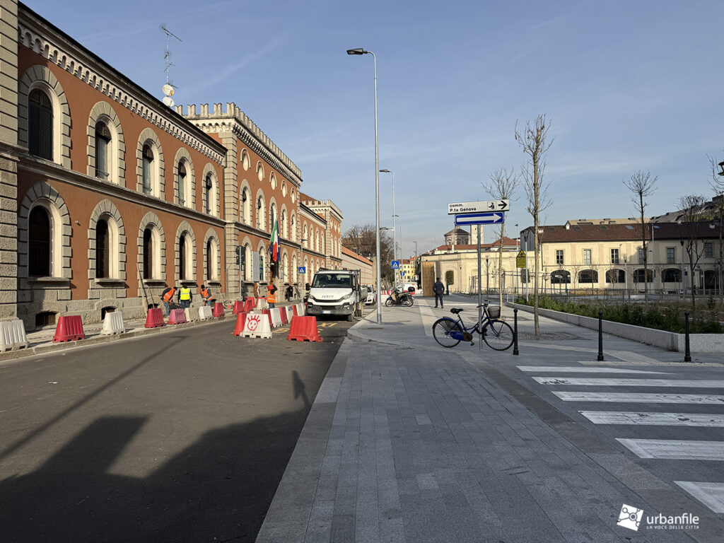 I lavori vedono il ripristino dell’area centrale con il nuovo disegno che sta caratterizzando molti interventi dopo il cantiere M4: aiuole a vasca a gradoni, con posa delle prime alberature. Gli abitanti della zona hanno cominciato a chiamare il nuovo disegno delle aiuole: “il campo di bocce”.