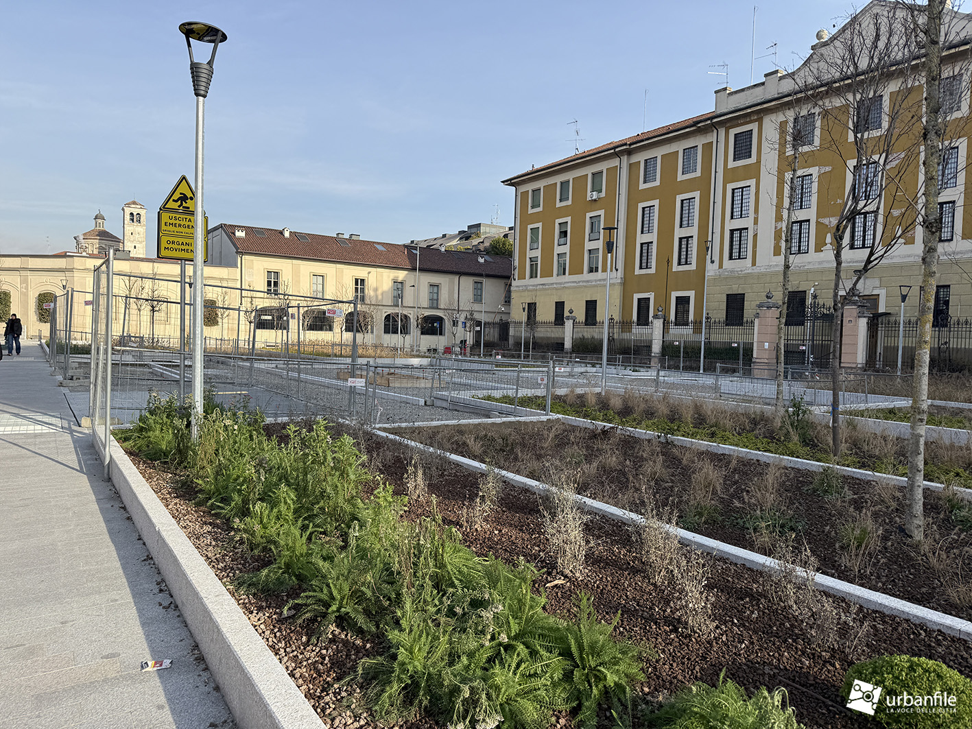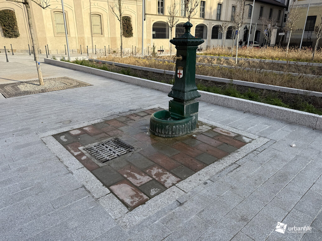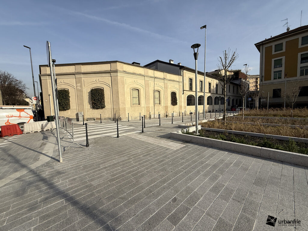Gennaio 2026. Ancora piccoli interventi e possiamo dire completato il cantiere per il ripristino in superficie delle aree interessate dal cantiere della tratta M4 Sant’Ambrogio – M4 Coni Zugna, che hanno occupato l’area di piazza Gaetano Filangieri per realizzare il manufatto a supporto della linea della metropolitana blu.