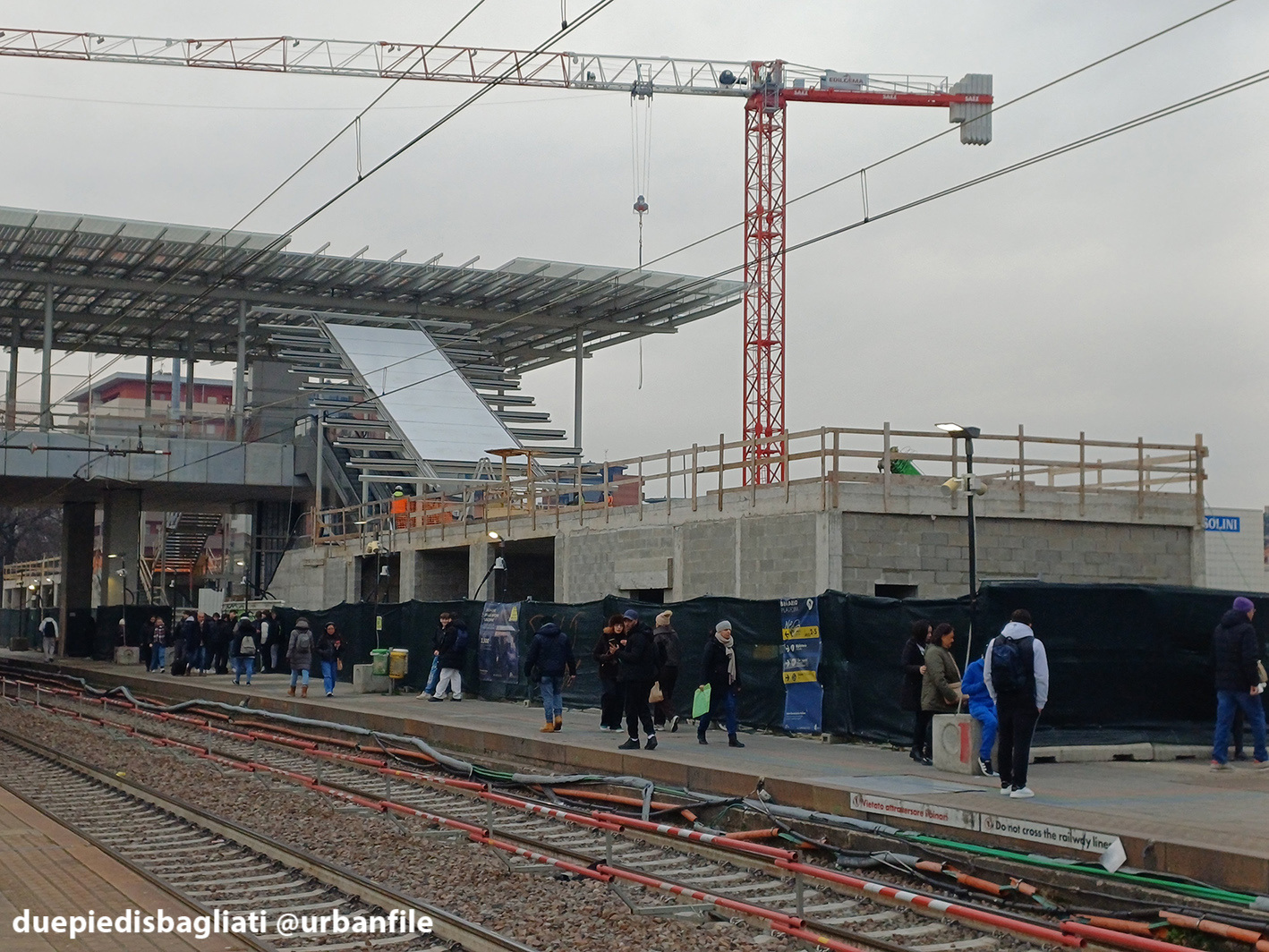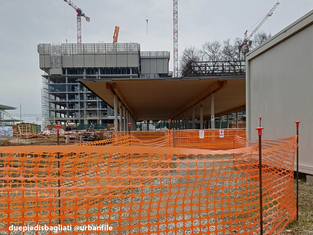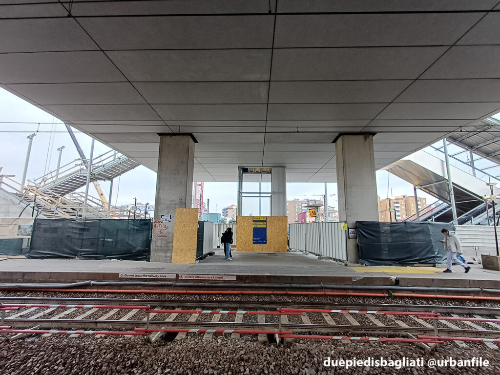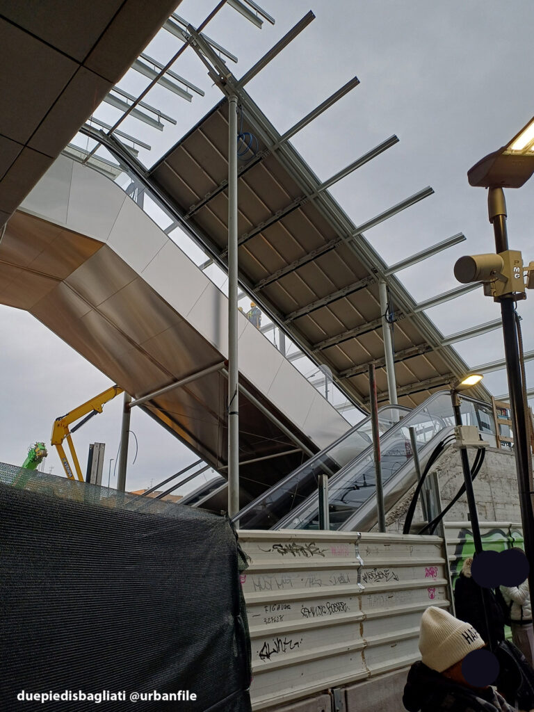 Dal nostro ultimo giretto ci saremmo aspettati qualche novità più eclatante nel cantiere della stazione, alla fine sono poche le novità. I lavori sembra procedano un po’ lentamente, il ponte ad esempio, è ancora inaccessibile, ma si può usare il tunnel come ai bei tempi. La struttura laterale con le colonne adesso ha un tetto (parrebbe in legno?).