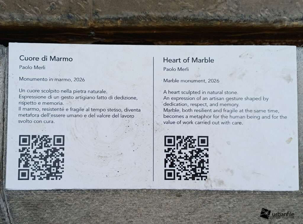 Gennaio 2026. Cuore di Marmo è una scultura di 250 kg realizzata dall’azienda Merli Marmi di Voghera e donata alla Regione Lombardia per celebrare l’iniziativa Cuori Olimpici, un viaggio che nel 2025 ha attraversato tutti i capoluoghi lombardi per valorizzare le peculiarità e le eccellenze del territorio, concludendosi in piazza Città di Lombardia ai piedi della torre della regione.