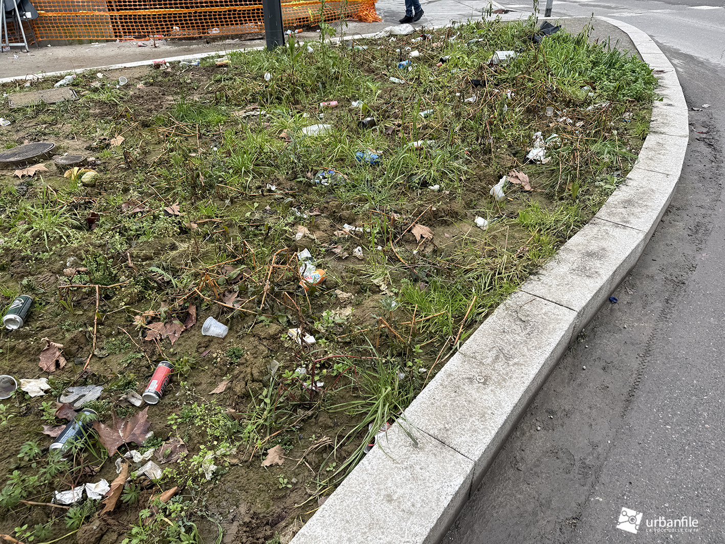Iniziamo il nostro giretto con uno sguardo delle aiuole completate un anno fa. Nel nostro “racconto” fingeremo di non vedere auto parcheggiate ovunque, aiuole già insudiciate e immondizia accumulata ovunque.