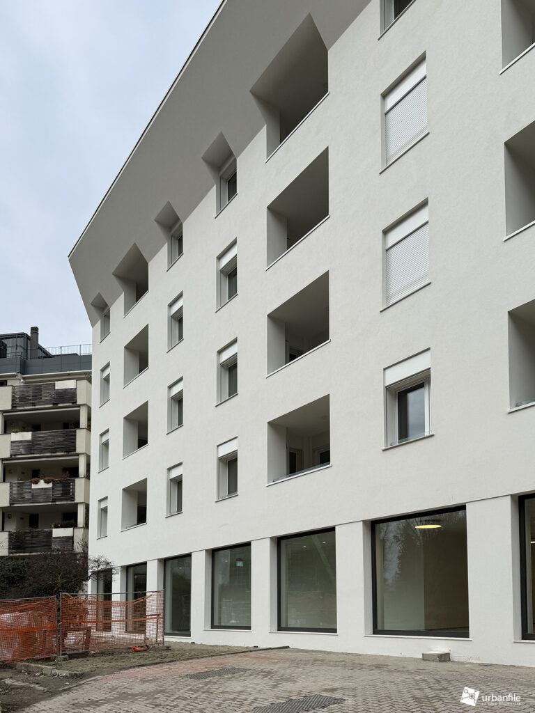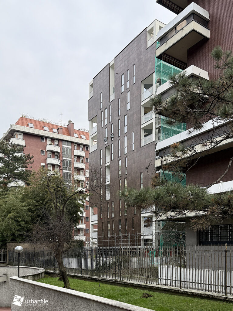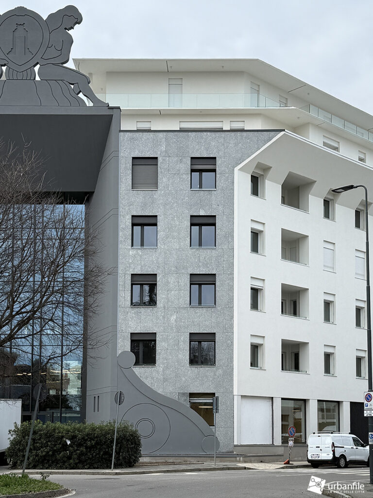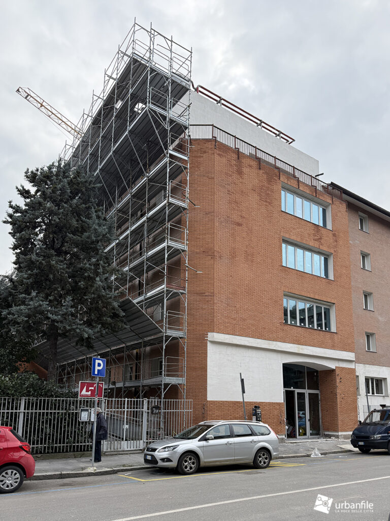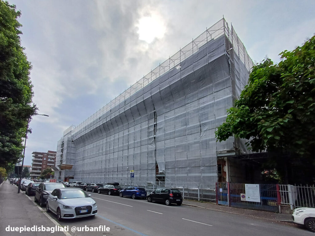 Concludiamo col cantiere in conclusione di via Nizzoli, dove l’edificio simbolo dello stile post-moderno a Milano, è stato convertito in un complesso residenziale (precedentemente era ad uso uffici).