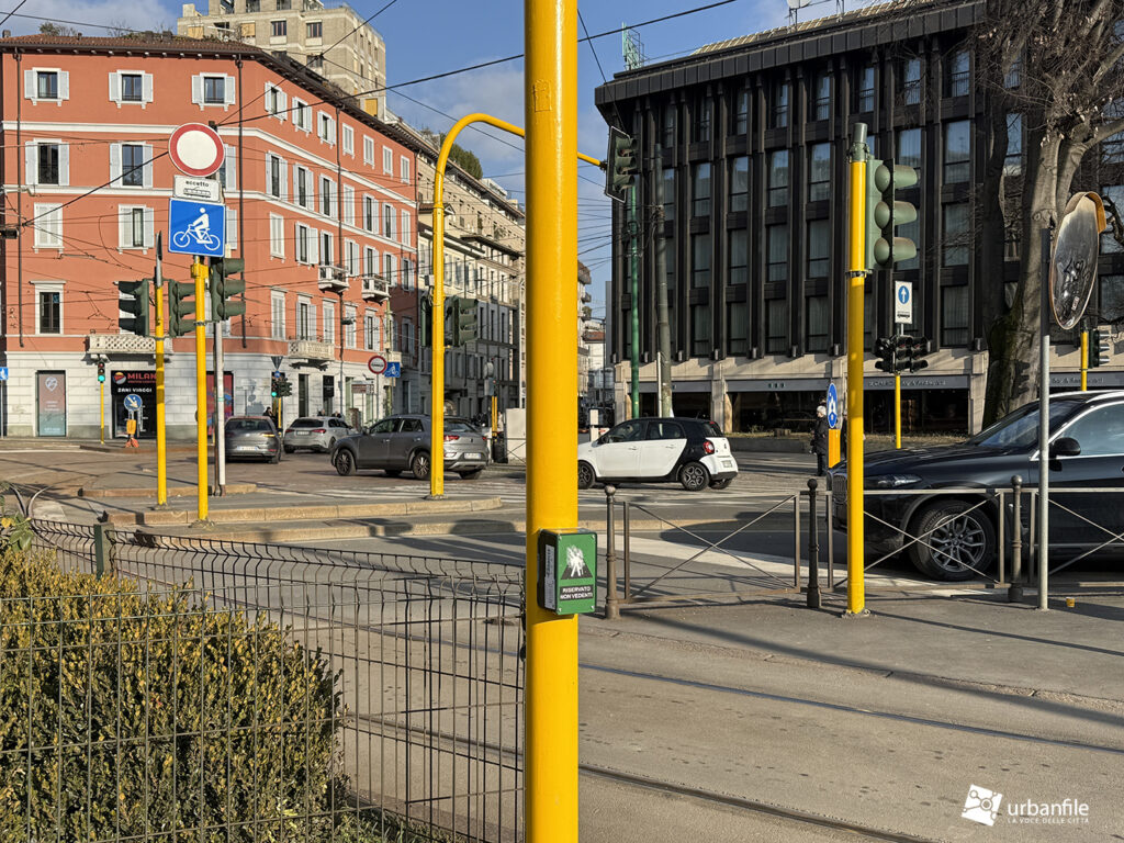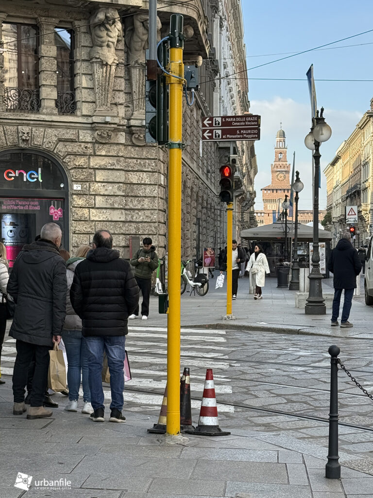 Da anni, infatti, i semafori erano lasciati con i pali “al naturale”: semplici tubi zincati, dal tipico colore grigio maculato del metallo. Un tempo, soprattutto tra gli anni Sessanta, Settanta e Ottanta, molti semafori venivano dipinti di giallo; poi si è preferito lasciare il metallo a vista, fino ad arrivare a questi giorni. Per ora abbiamo visto i pali gialli dal Cordusio al Castello, ma anche in piazza Oberdan, a Porta Venezia, e in piazza della Repubblica. Va detto che qualche semaforo giallo esisteva già, installato un po’ a caso (come spesso succede a Milano), sicuramente riciclato da quelli più vecchi.