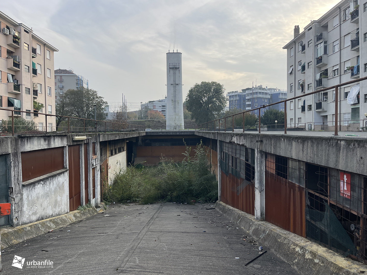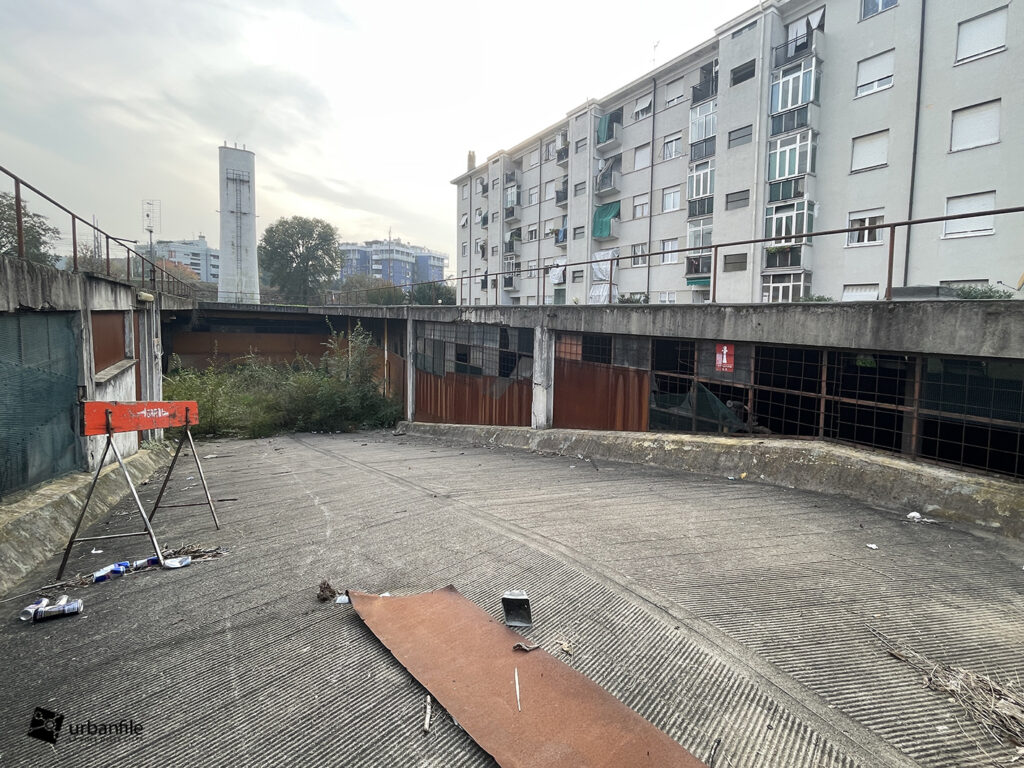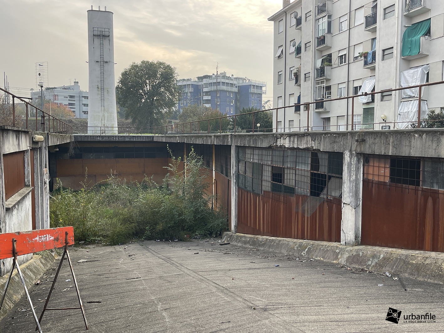 Quasi di fronte alla stecca commerciale di via Padre Luigi Monti, al civico 19, si trova oggi in totale stato di abbandono un ampio garage comunale, capace di ospitare oltre cento posti auto. Secondo diverse testimonianze, per un lungo periodo la struttura sarebbe stata gestita da clan legati alla ’ndrangheta. Dal 2008 il parcheggio risulta completamente dismesso e, in seguito all’esondazione del fiume Seveso nel settembre 2010, venne allagato senza che il fango e i detriti fossero successivamente rimossi.