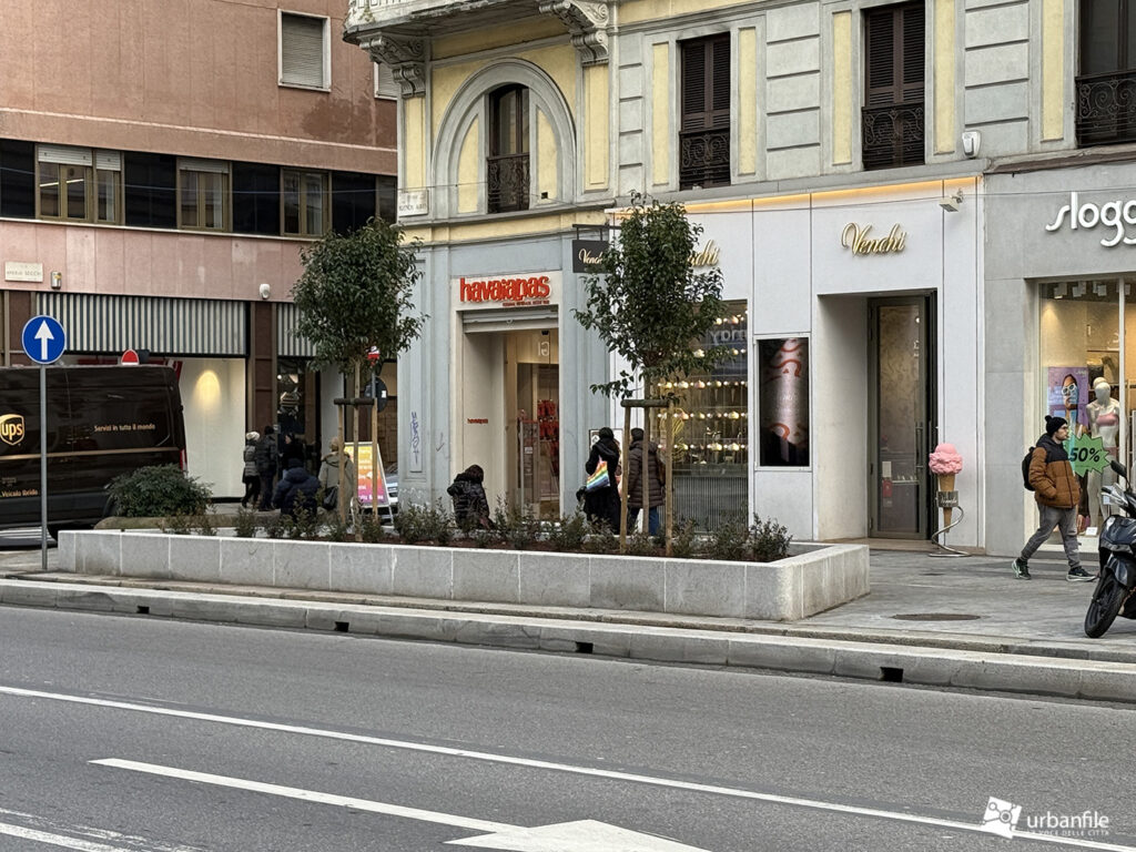 Come abbiamo visto già da novembre sono cominciati i lavori anche sul lato pari del corso in questo tratto, mentre il lato dispari è già stato completato da piazza Lima sino a via Scarlatti da mesi ormai. Finalmente il marciapiede di piazza Lima è stato allargato e non si dovrà più fare la gimcana tra aiuola, edicola e totem-orologio per chi proviene dal Corso. Anche l’edicola è stata ruotata e ora rivolge il lato “aperto” verso il corso, non come prima che volgeva l’apertura principale verso la piazza. Qui le aiuole avrebbero bisogno di manutenzione, ma attendiamo la conclusione dei lavori. Lungo il corso su questo lato procedono i lavori per la riqualificazione.