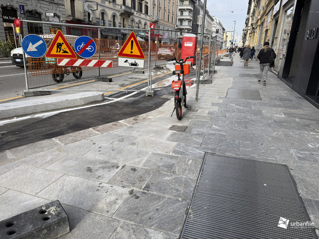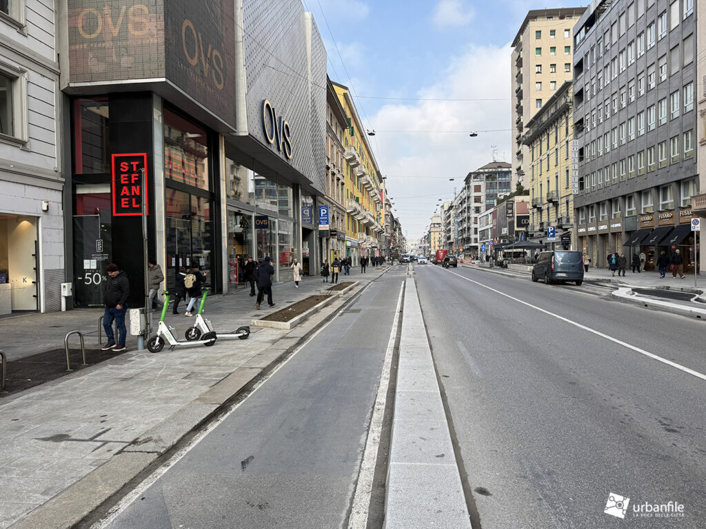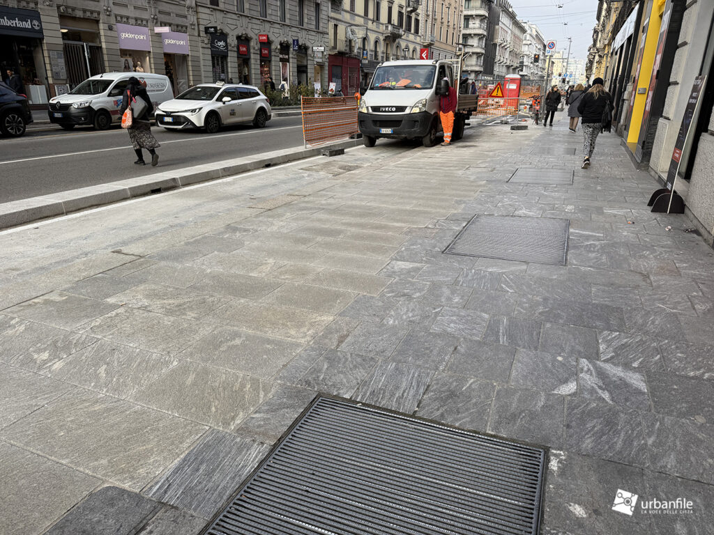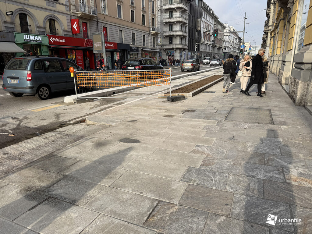 Dall’incrocio delle vie San Gregorio/Omboni alle vie Boscovich/Redi la sistemazione nuova è stata completata su entrambi i lati. Manca ancora da completare il tratto dei marciapiedi davanti al Palazzo Argentina (Muji), ma ormai ci siamo.