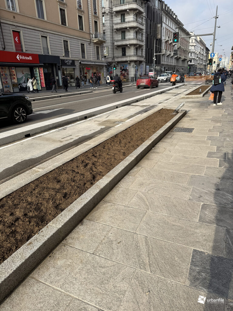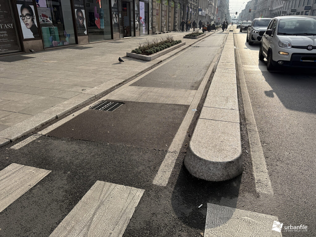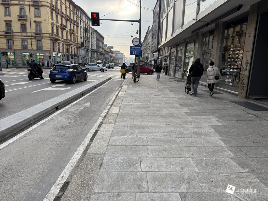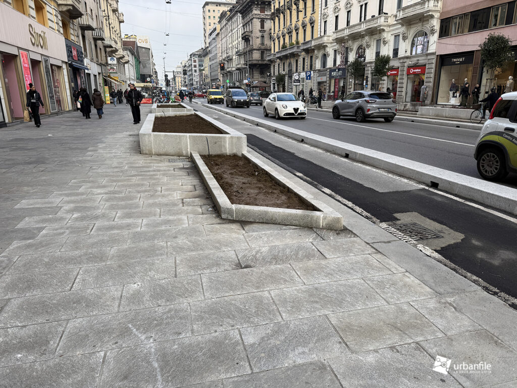 Dall’incrocio delle vie San Gregorio/Omboni alle vie Boscovich/Redi la sistemazione nuova è stata completata su entrambi i lati. Manca ancora da completare il tratto dei marciapiedi davanti al Palazzo Argentina (Muji), ma ormai ci siamo.