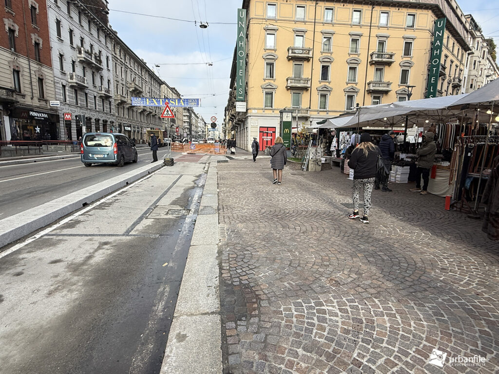 Come spesso facciamo, abbiamo percorso l’intero tragitto, da piazza Oberdan a piazzale Loreto, cercando di documentare con fotografie ogni tratto del corso attualmente interessato dai cantieri.