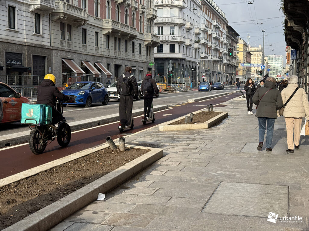 Da piazza Oberdan ai viali Regina Giovanna e Tunisia, la situazione è rimasta com’era: lato pari completato mentre il lato dispari è rimasto invariato.