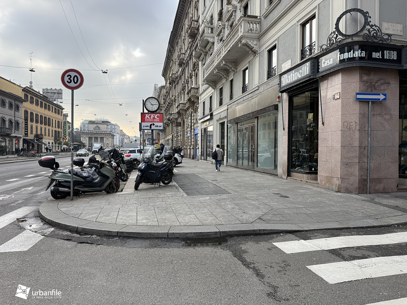 Dall’incrocio delle vie San Gregorio/Omboni alle vie Boscovich/Redi la sistemazione nuova è stata completata su entrambi i lati. Manca ancora da completare il tratto dei marciapiedi davanti al Palazzo Argentina (Muji), ma ormai ci siamo.