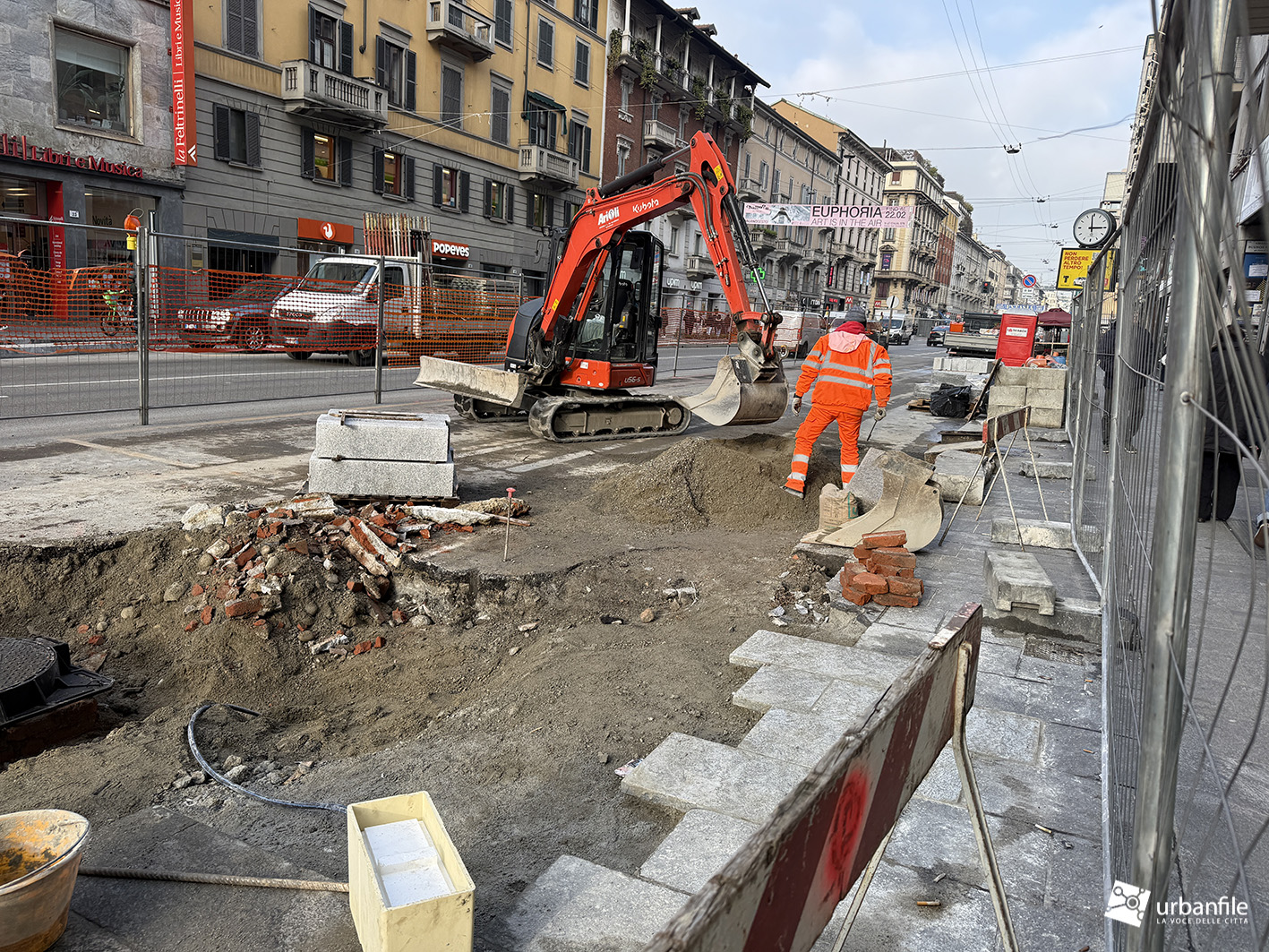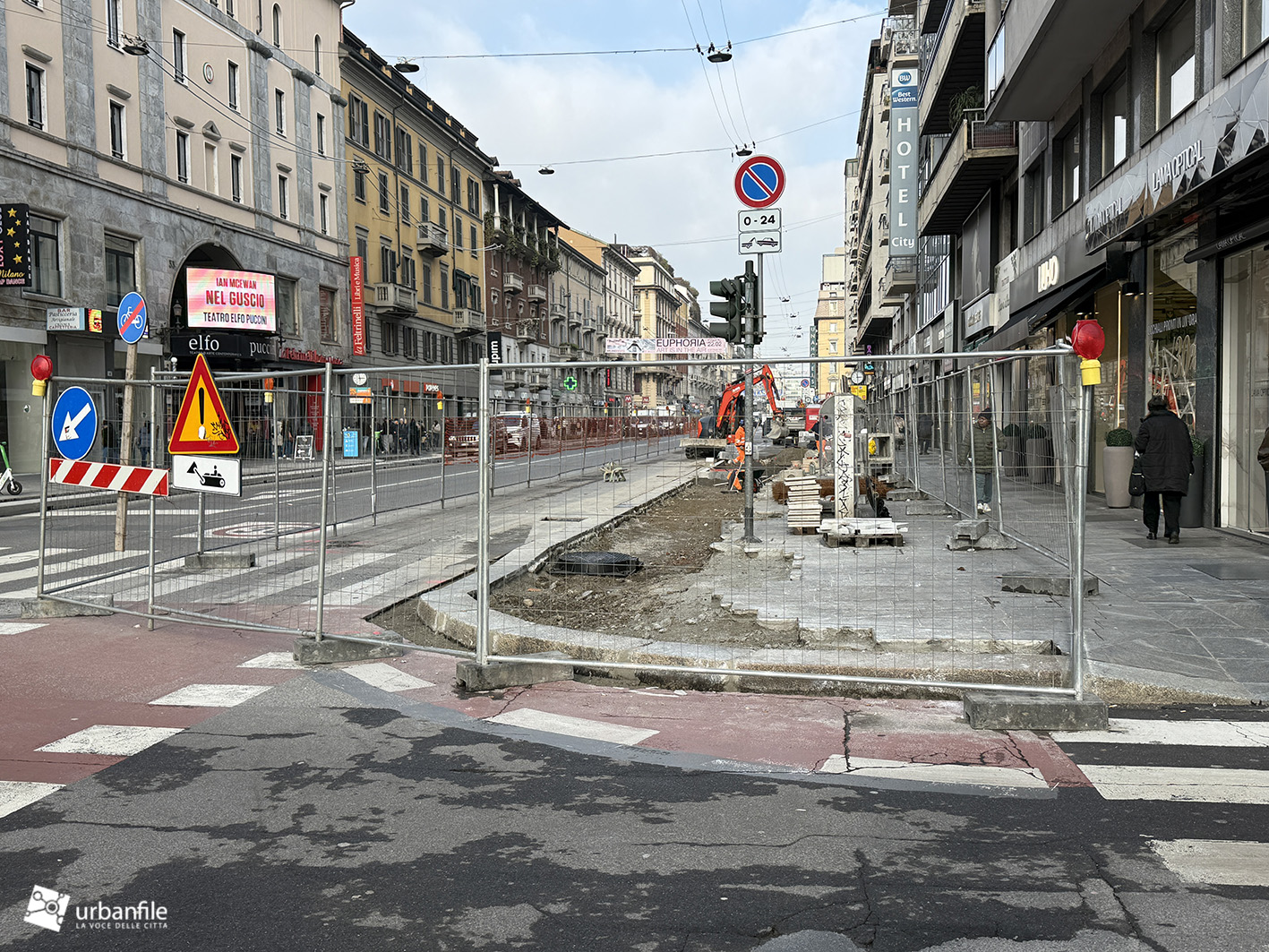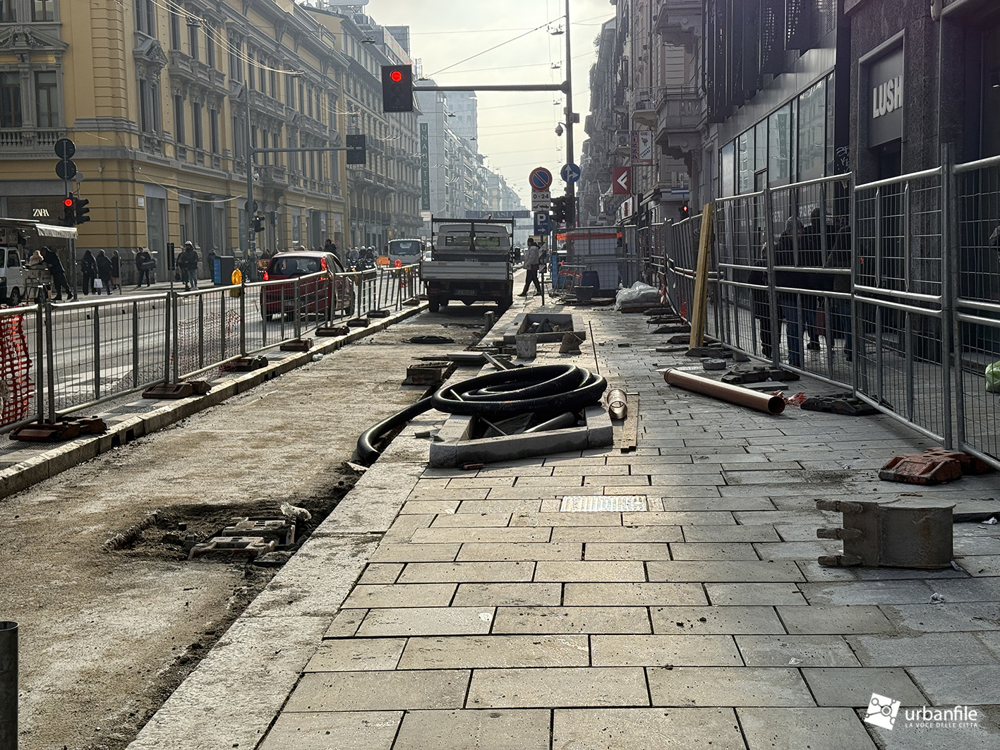 Fine gennaio 2026. Solito aggiornamento fotografico mensile dal cantiere per la riqualificazione di Corso Buenos Aires, la grande arteria commerciale lunga un chilometro e mezzo sita tra Porta Venezia e Loreto.