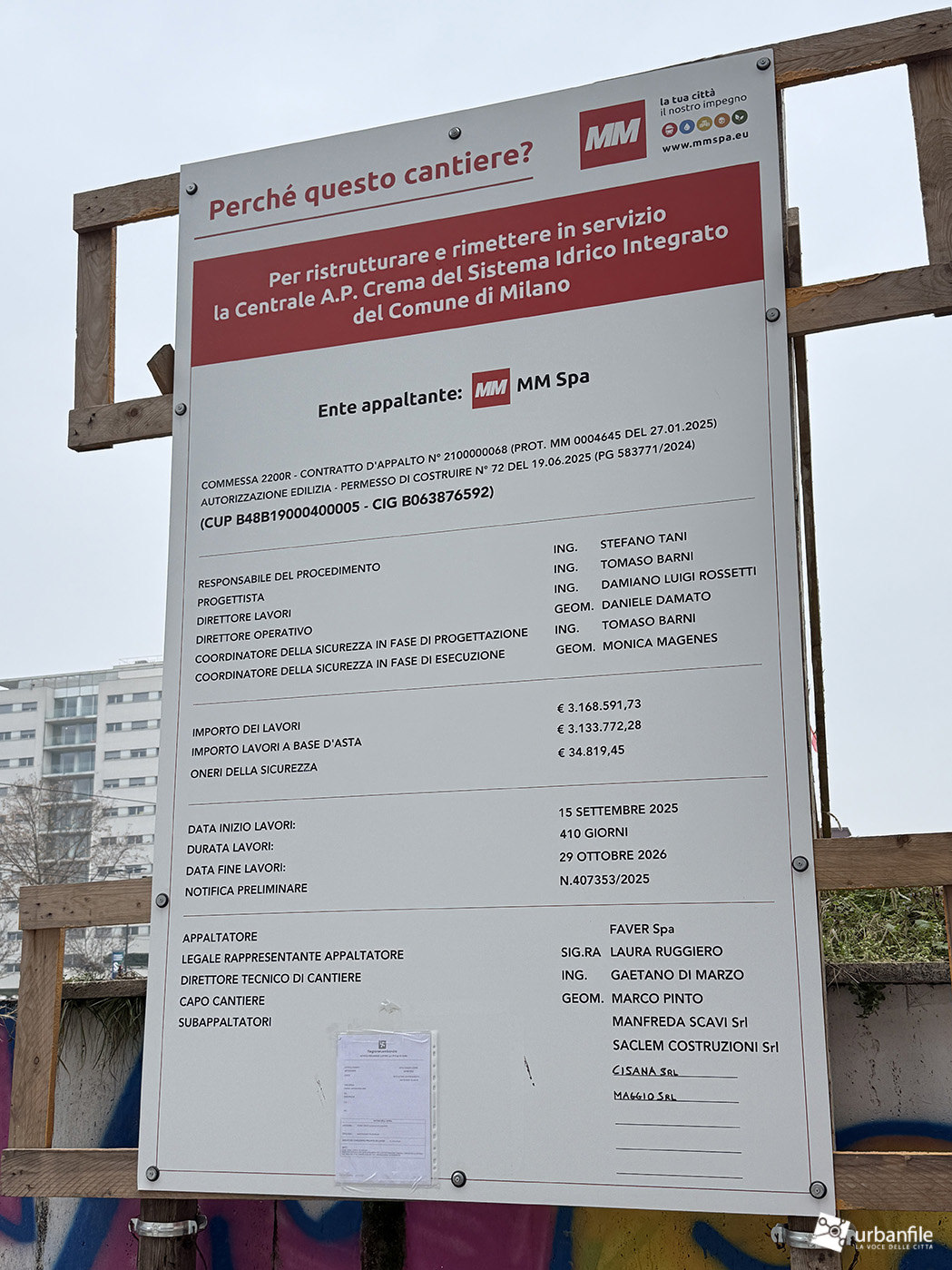 Da alcuni mesi sono in corso i lavori di recupero dei manufatti finalizzati alla ristrutturazione e alla rimessa in servizio della Centrale Acqua Potabile Crema del Sistema Idrico Integrato del Comune di Milano. Questa rappresenta la prima fase di un intervento più ampio che prevede la riqualificazione di una porzione di via Crema e delle strade limitrofe, comprendendo la pedonalizzazione del tratto sud, la realizzazione di una nuova piazza all’incrocio con via Salmini e via Verona, un nuovo sagrato per la chiesa di Sant’Andrea, l’ampliamento dei marciapiedi, l’incremento del verde e il potenziamento dei percorsi ciclabili. Il tutto sarà realizzato grazie agli oneri di urbanizzazione legati all’intervento per la Torre A2A in costruzione oltre piazza Trento.