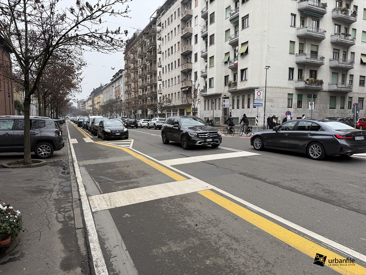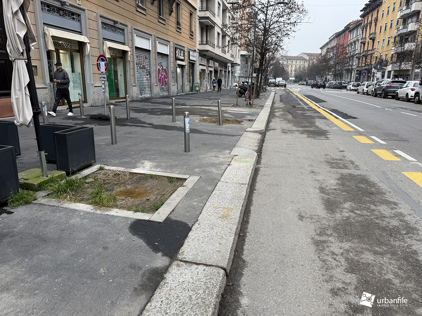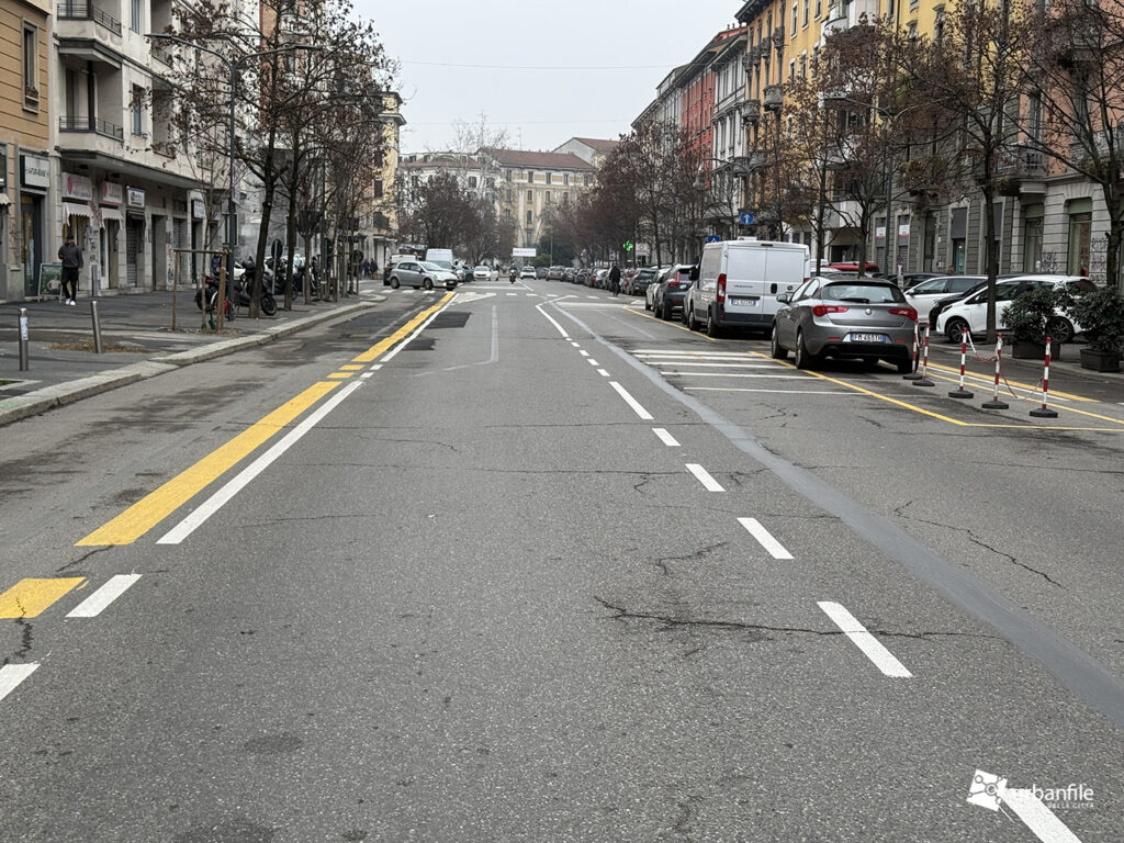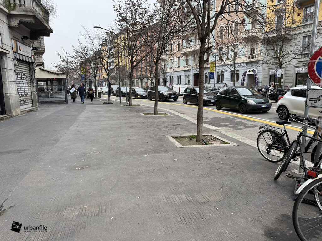 Bene anche la pista ciclabile fatta in strada, prima la carreggiata era troppo larga ora invece gli spazi sono perfettamente distribuiti. Negli ex parcheggi, dove sono gli alberi e il marciapiede, dovrebbe essere mantenuto lo spazio per tanto tempo sottratto ai pedoni e ai locali lì presenti e possibilmente depavimentare per aggiungere zone verdi e rendere l’ambiente più accogliente, sopratutto d’estate. Che piaccia o no, questo è il modo migliore per rendere Milano più bella e vivibile a costo davvero basso per il comune