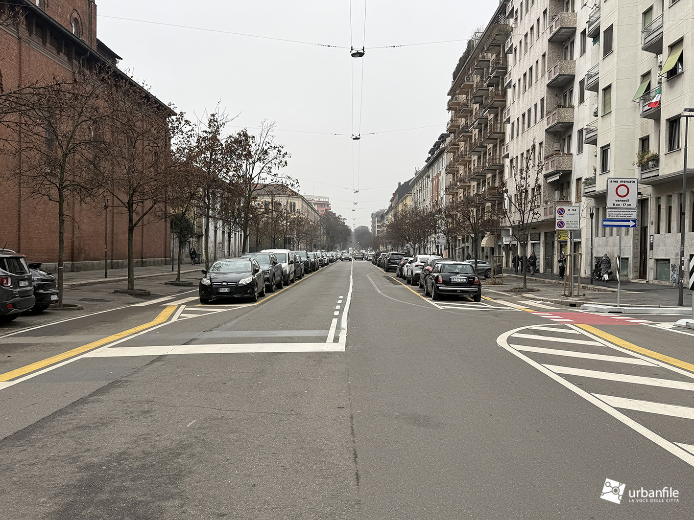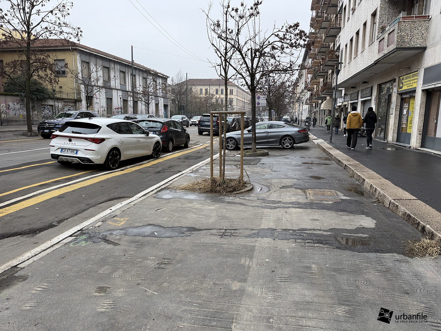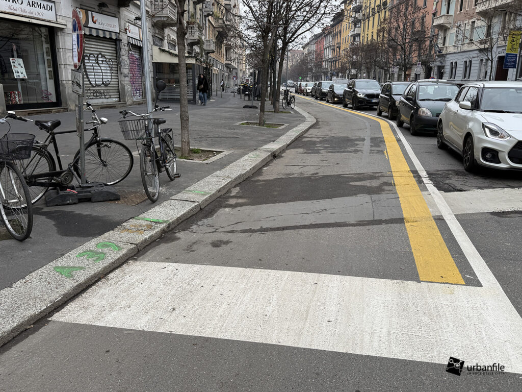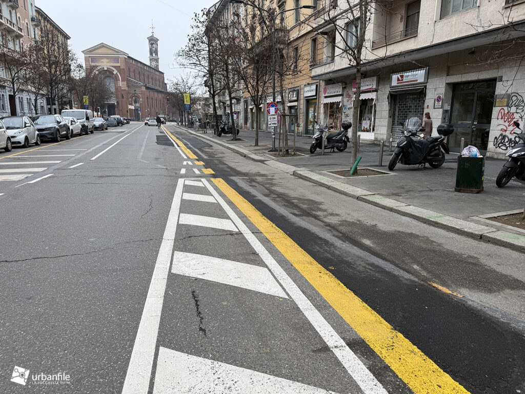 Bene anche la pista ciclabile fatta in strada, prima la carreggiata era troppo larga ora invece gli spazi sono perfettamente distribuiti. Negli ex parcheggi, dove sono gli alberi e il marciapiede, dovrebbe essere mantenuto lo spazio per tanto tempo sottratto ai pedoni e ai locali lì presenti e possibilmente depavimentare per aggiungere zone verdi e rendere l’ambiente più accogliente, sopratutto d’estate. Che piaccia o no, questo è il modo migliore per rendere Milano più bella e vivibile a costo davvero basso per il comune