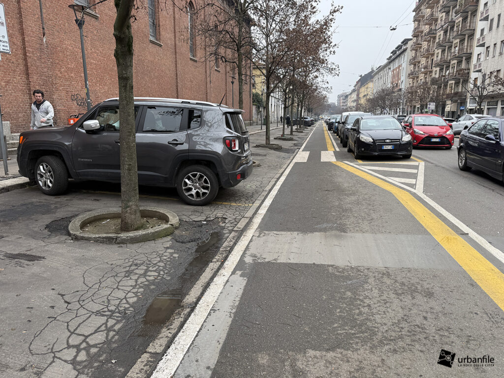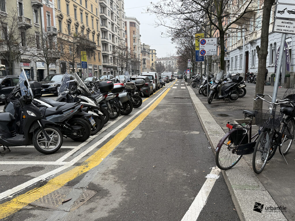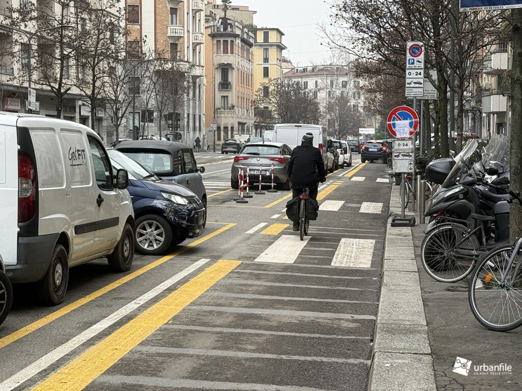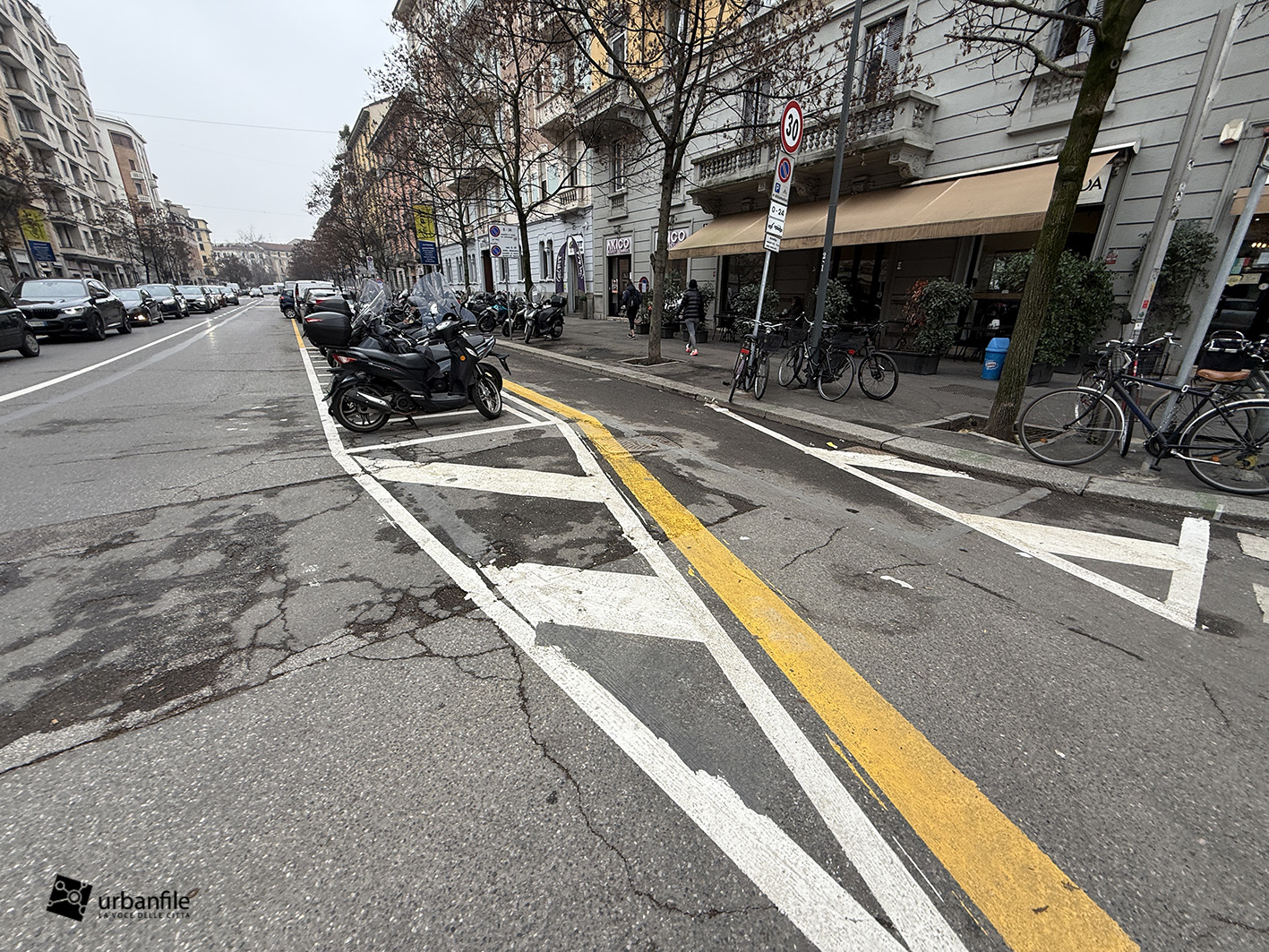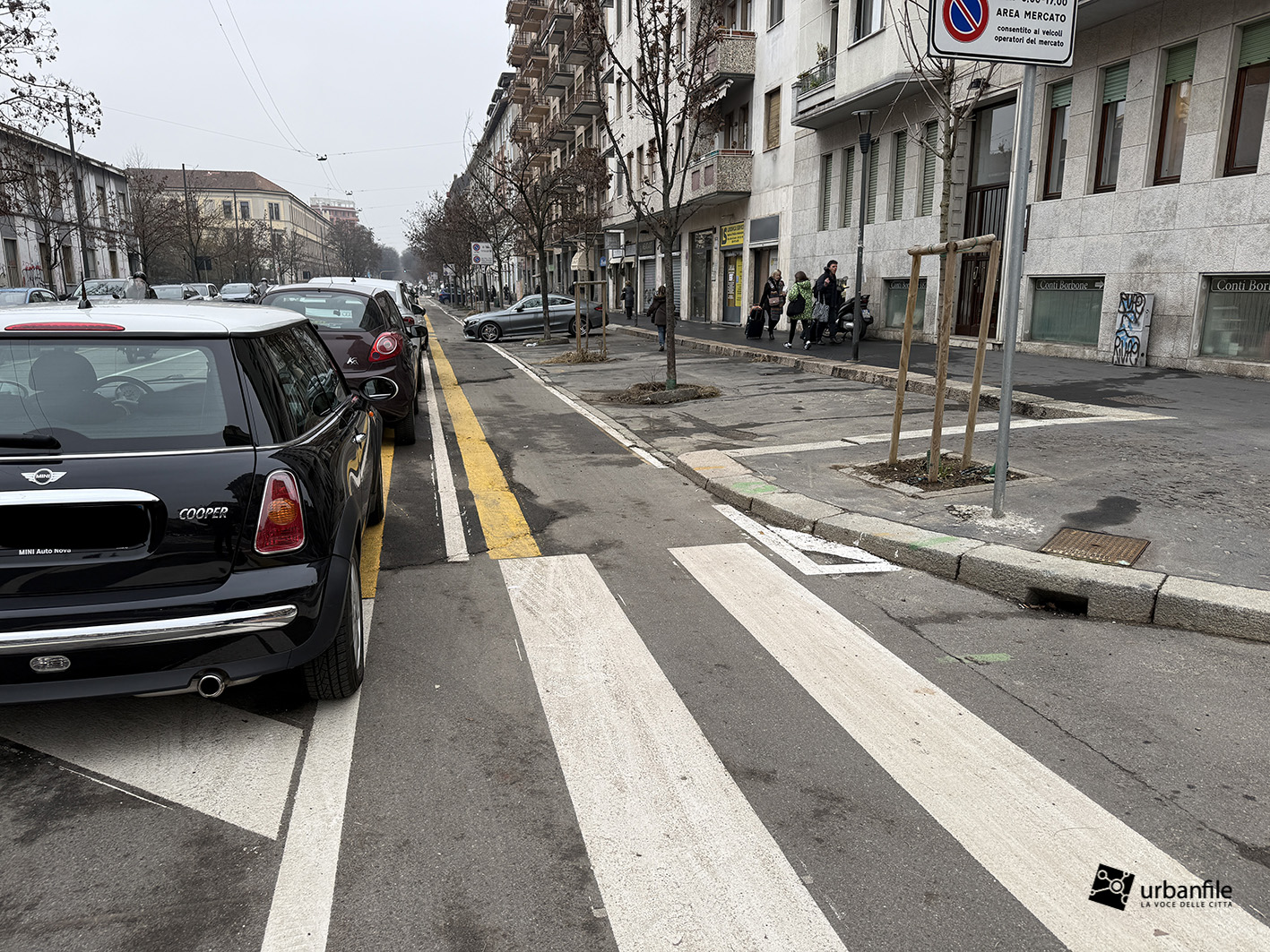 Bene anche la pista ciclabile fatta in strada, prima la carreggiata era troppo larga ora invece gli spazi sono perfettamente distribuiti. Negli ex parcheggi, dove sono gli alberi e il marciapiede, dovrebbe essere mantenuto lo spazio per tanto tempo sottratto ai pedoni e ai locali lì presenti e possibilmente depavimentare per aggiungere zone verdi e rendere l’ambiente più accogliente, sopratutto d’estate. Che piaccia o no, questo è il modo migliore per rendere Milano più bella e vivibile a costo davvero basso per il comune