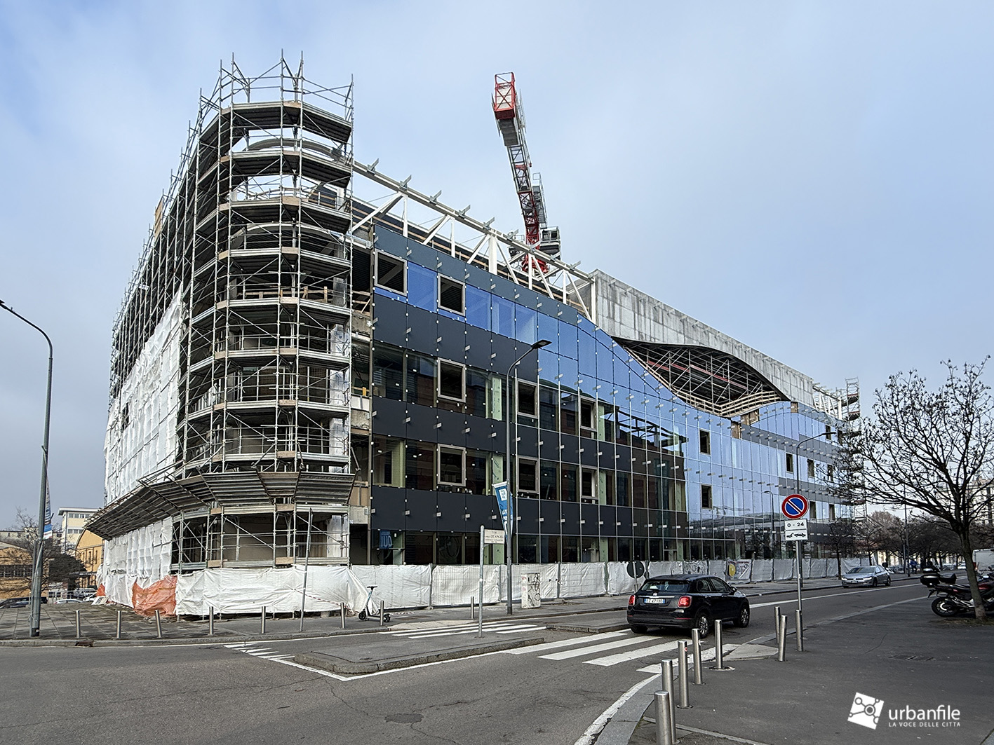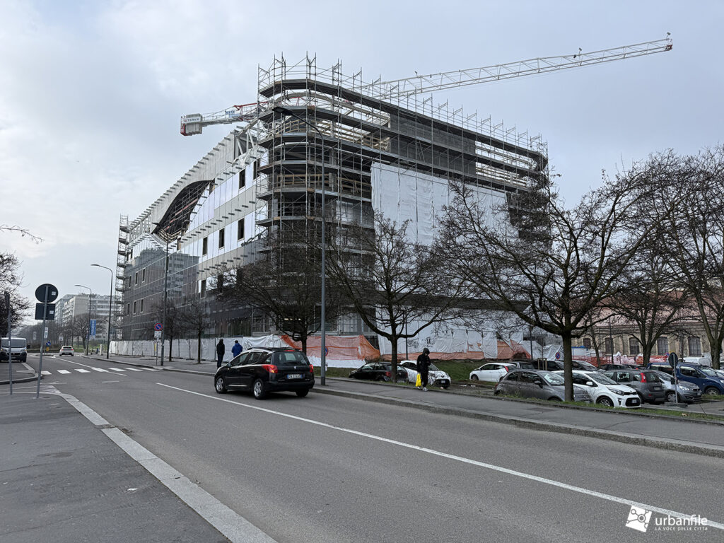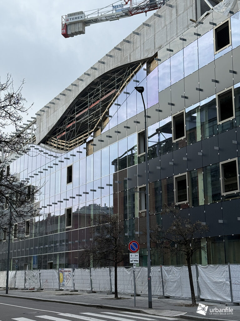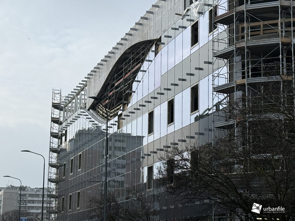 L’edificio pare iniziare a mostrare la sua nuova facciata, molto interessante.