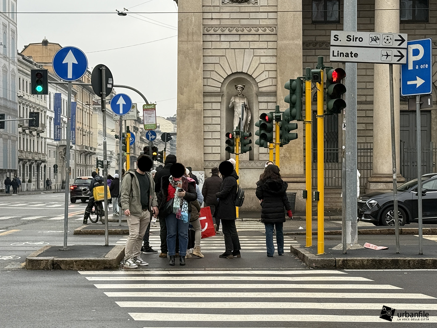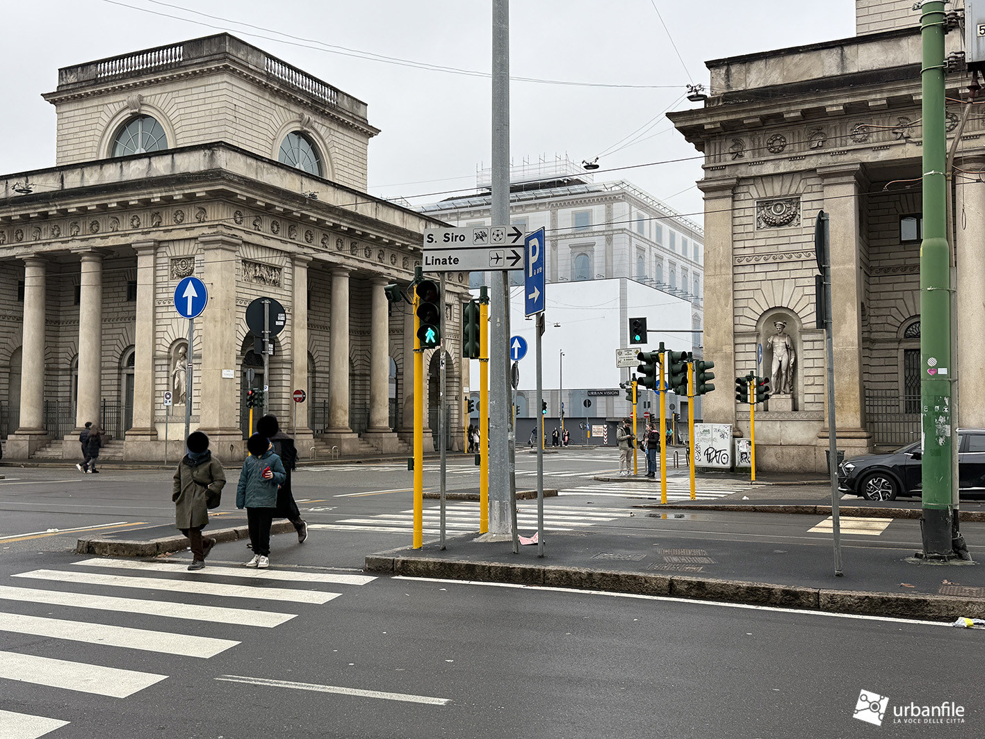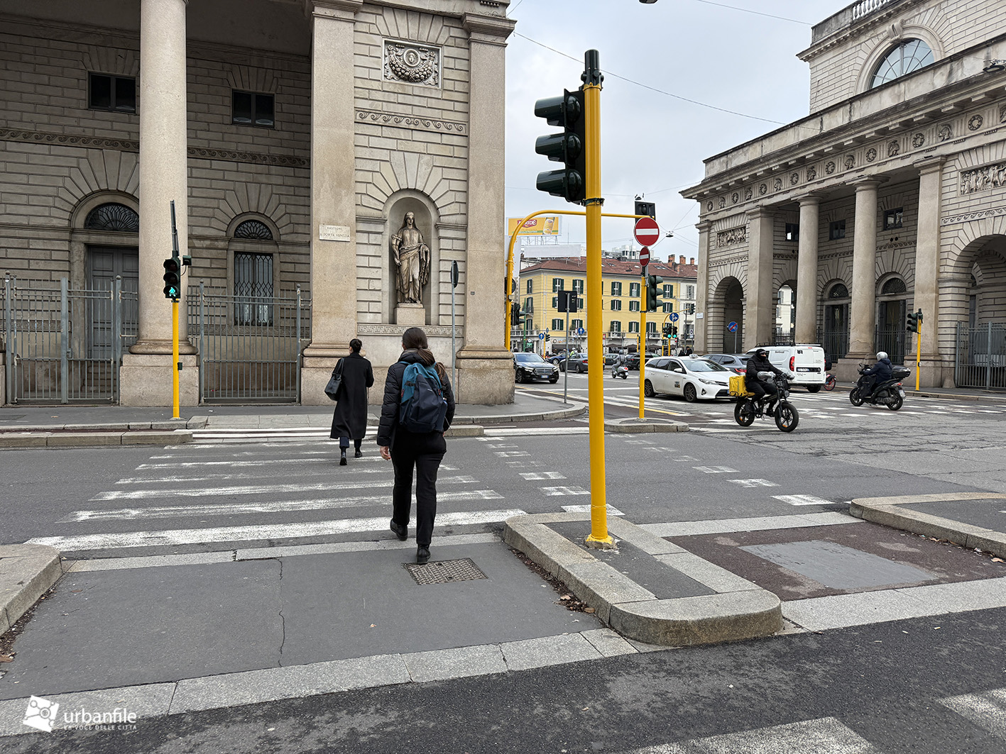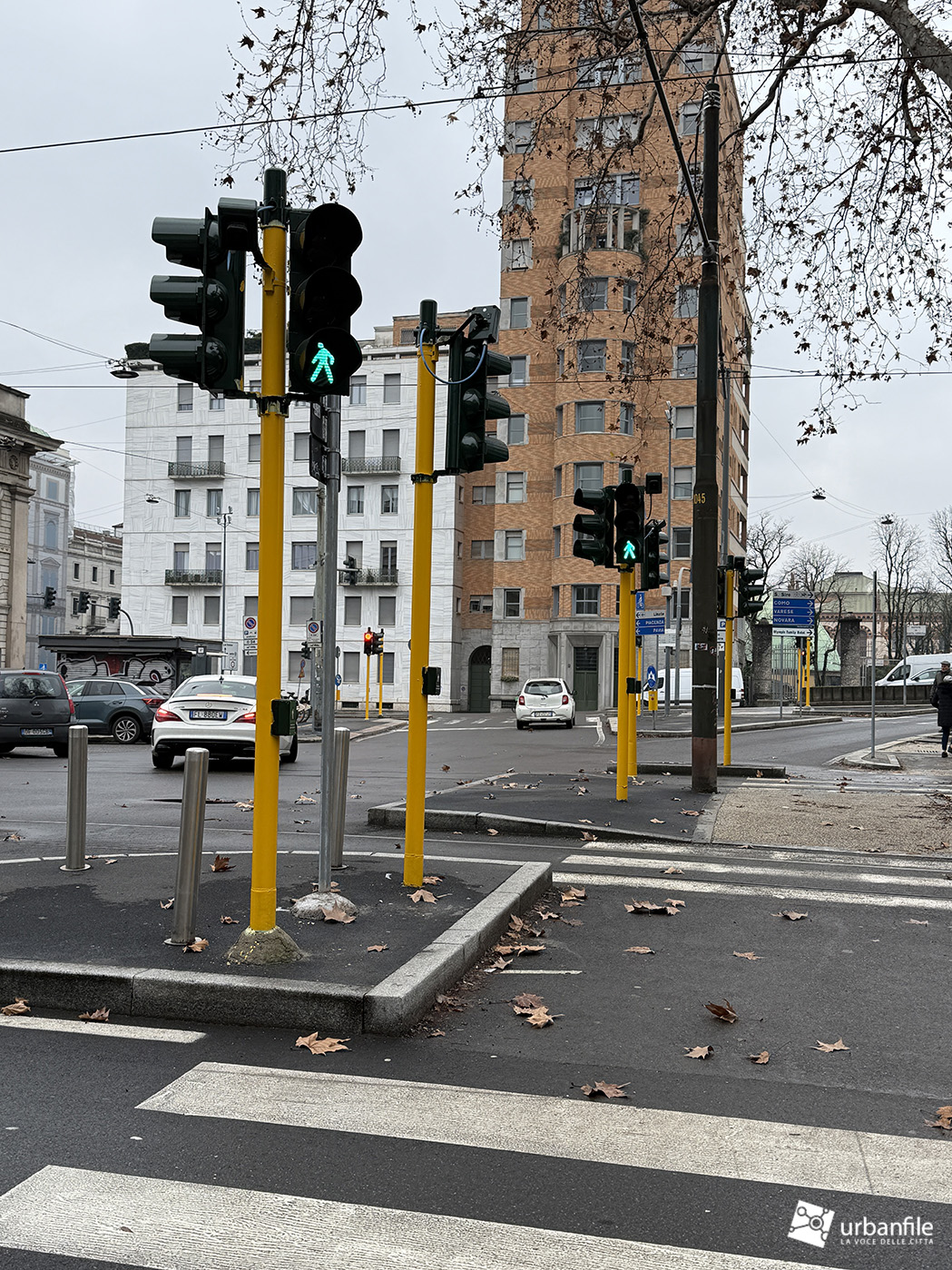 A me sembra che il giallo sia un bellissimo colore, che siano meravigliosi i campi di girasole e le mele golden ben mature, ma anche che questi pacchiani pali gialli che contornano gli edifici storici di Milano producano un accostamento e un contrasto semplicemente penoso e siano solo frutto di ignoranza e di una gestione dell’ arredo urbano e della manutenzione della città molto pressapochista, come evidenziato spesso da Urbanfile.