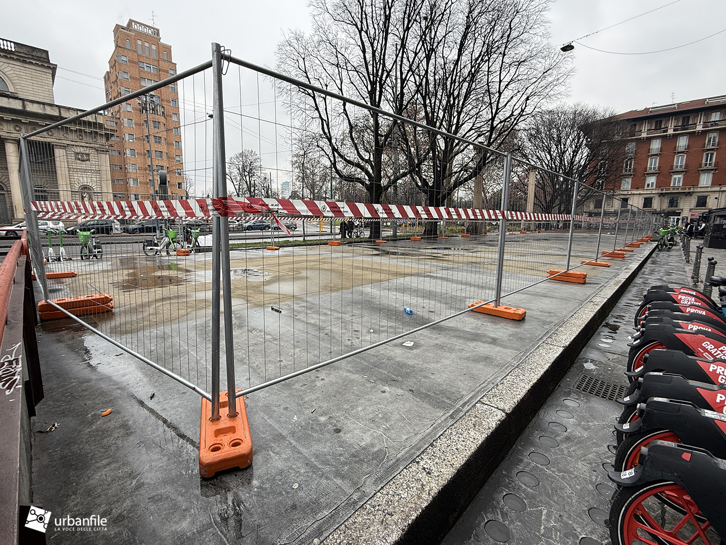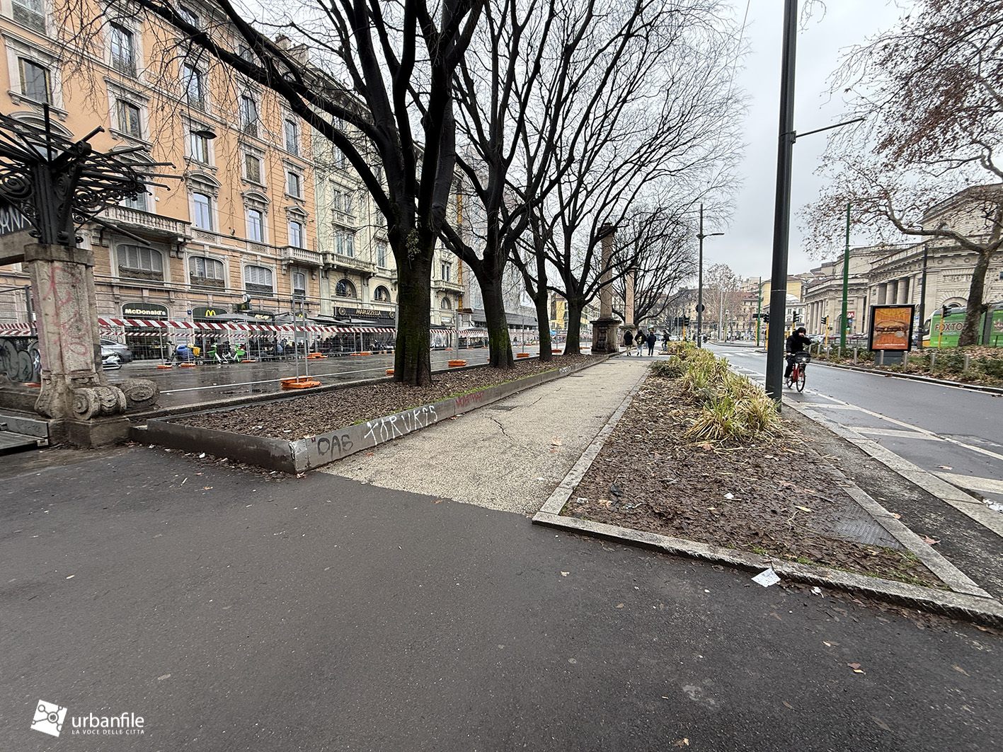 Febbraio 2026. Costantemente ci giungono segnalazioni sullo stato di sciatteria che caratterizza Milano, soprattutto in alcune zone molto frequentate e che avrebbero invece bisogno di maggiore cura. È il caso di piazza Guglielmo Oberdan, cuore della bella zona di Porta Venezia, dove sorgono i due caselli neoclassici e dove sono attualmente in corso i lavori di riqualificazione di corso Buenos Aires, con la realizzazione della pista ciclabile.
