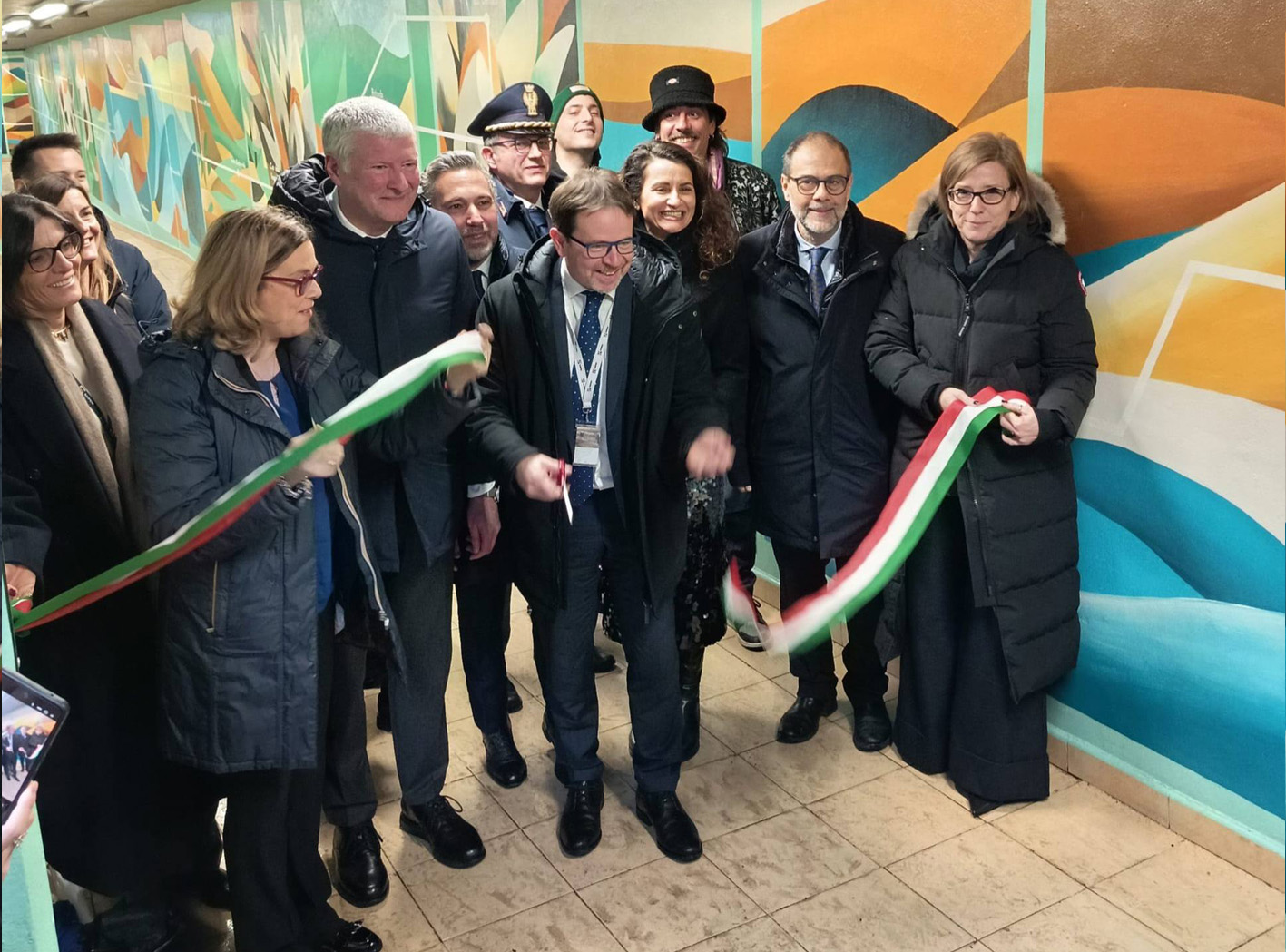 Oltre all’intervento artistico, il progetto ha incluso la pulizia delle pavimentazioni, la tinteggiatura del soffitto e l’installazione di corrimano e strisce antiscivolo, migliorando sensibilmente la fruibilità e la sicurezza dell’area.