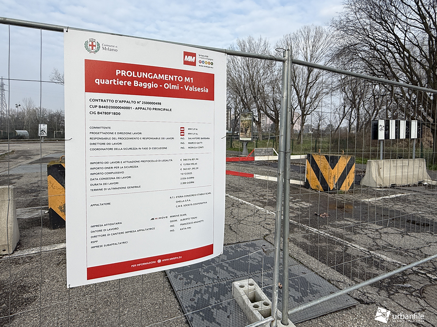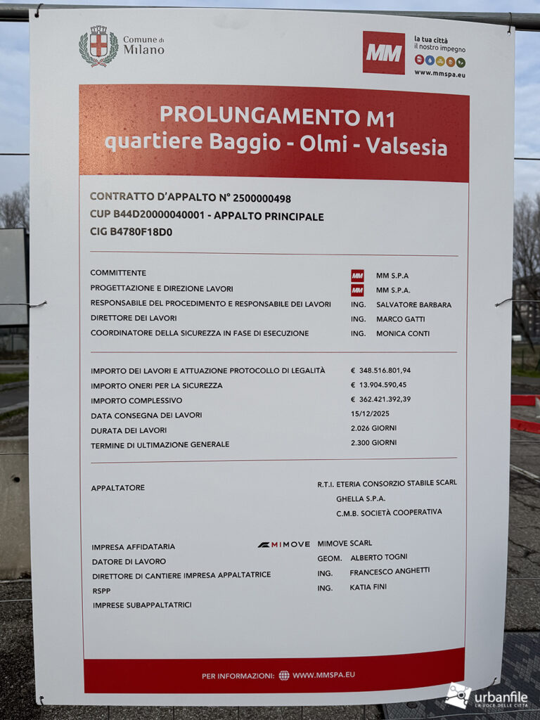 Febbraio 2026. Finalmente possiamo dire che il cantiere per il prolungamento della linea rossa della metropolitana, la M1 fino a Olmi, è entrato nella fase di approntamento: sono comparse le prime recinzioni e il primo cartello di cantiere.