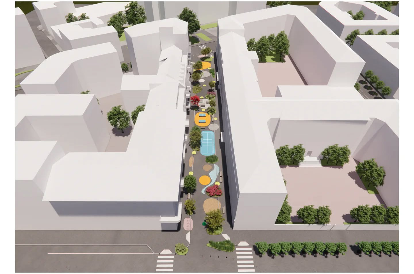 L’area era stata pedonalizzata nel 2022 con un intervento di urbanistica tattica nell’ambito del programma “Piazze Aperte per ogni scuola”, su richiesta della comunità scolastica e grazie a un Patto di collaborazione tra il Municipio e numerose associazioni del territorio. Con “Scuola Oasi” si realizzerà una trasformazione stabile dello spazio, che prevede la creazione di 17 isole verdi permanenti e opere di depavimentazione per aumentare le superfici permeabili, mitigare le isole di calore e migliorare il microclima urbano.