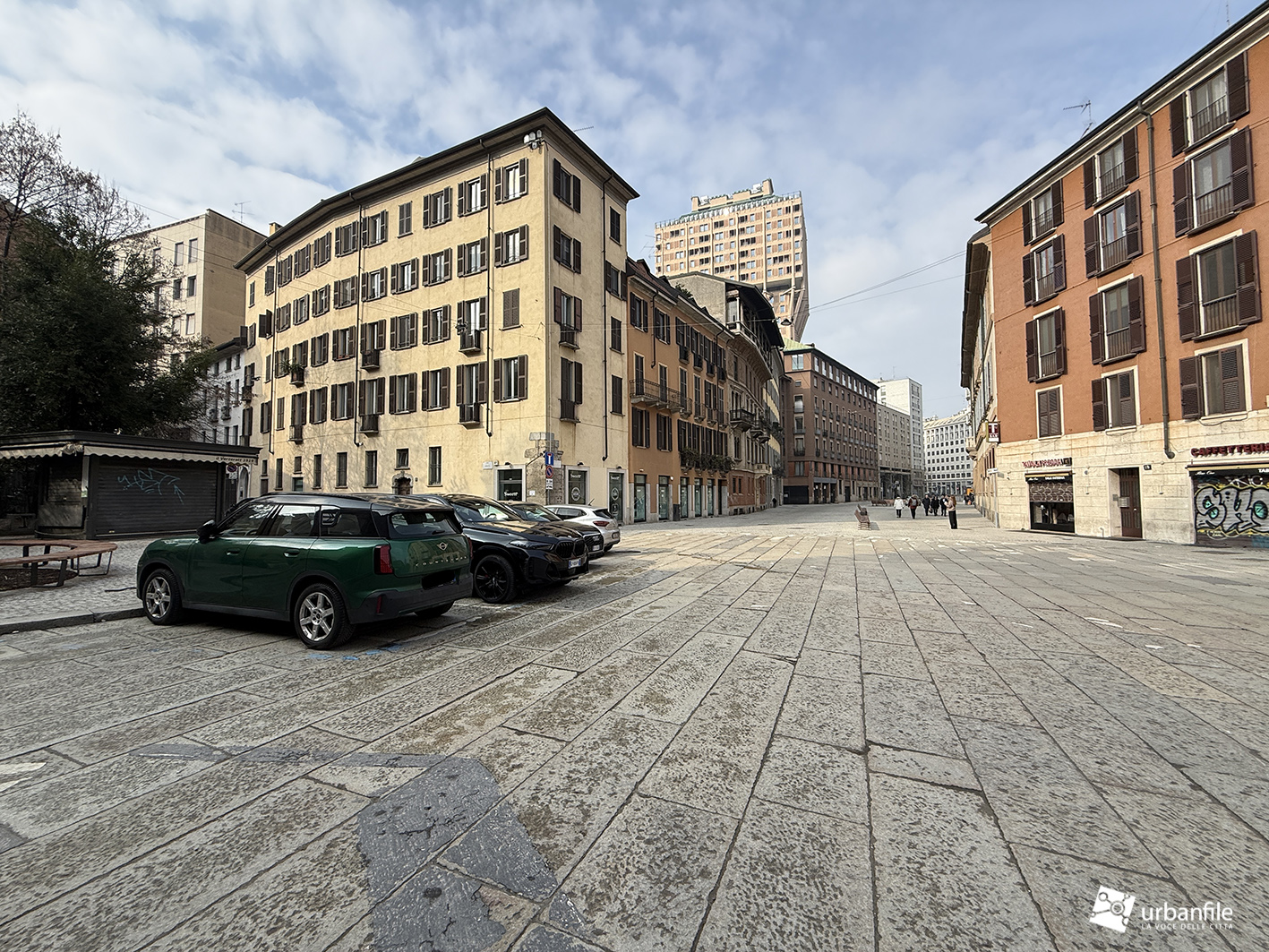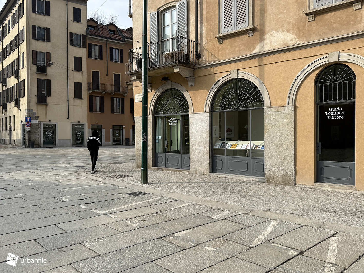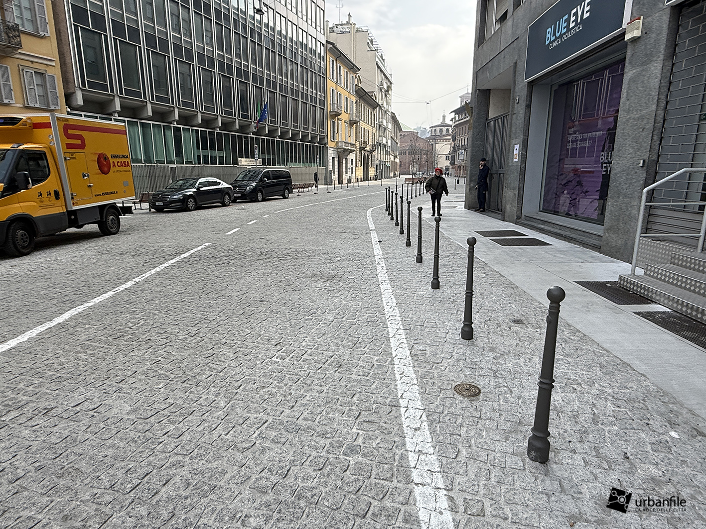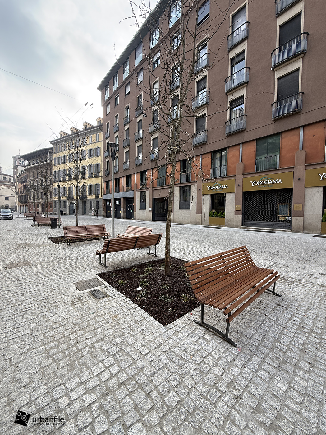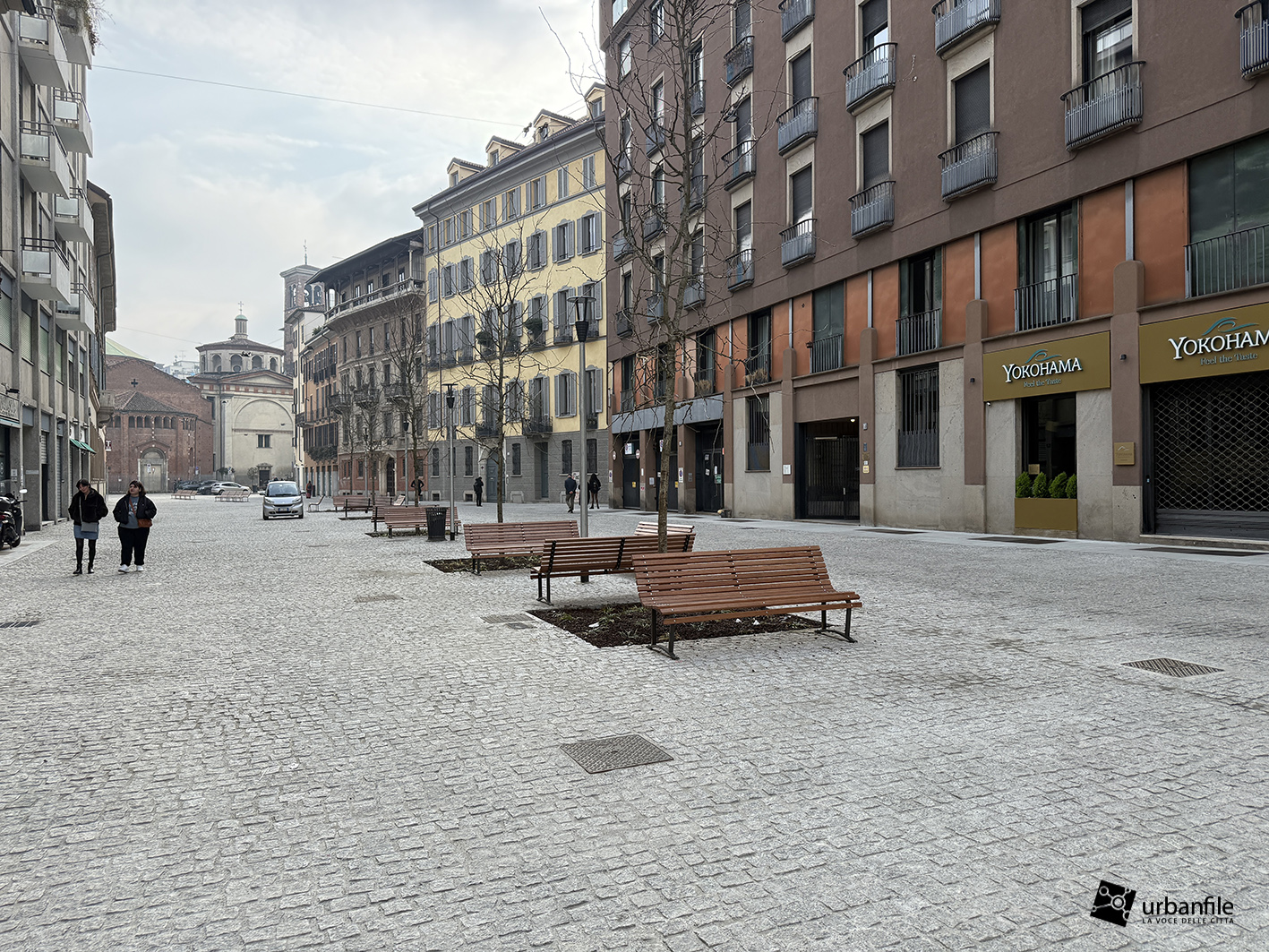 Anche qui l’intervento ha riqualificato uno spazio in precedenza utilizzato come parcheggio. Già rivestita con ampie lastre di pietra, con i lavori le piastre sono state riposizionate e sistemate. Nella pavimentazione è stata collocata una placca che indica la direzione per la stazione M3 Missori.