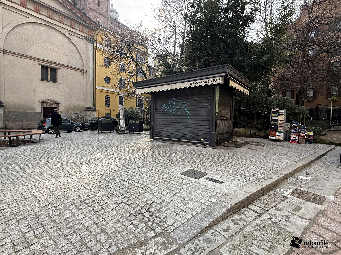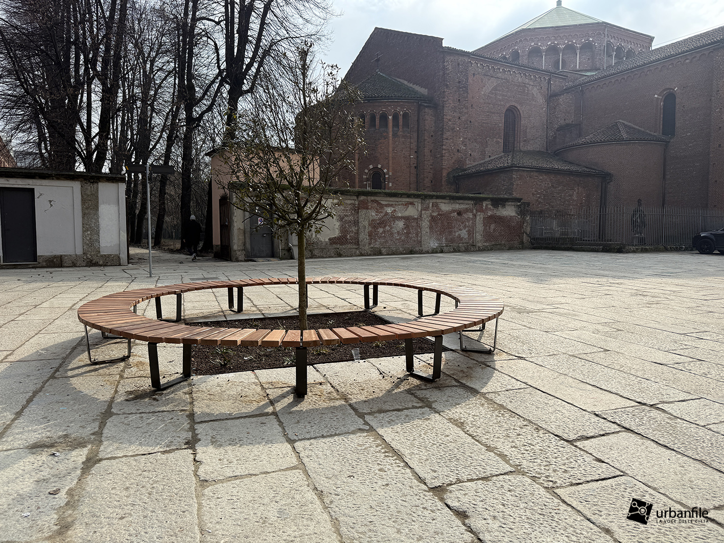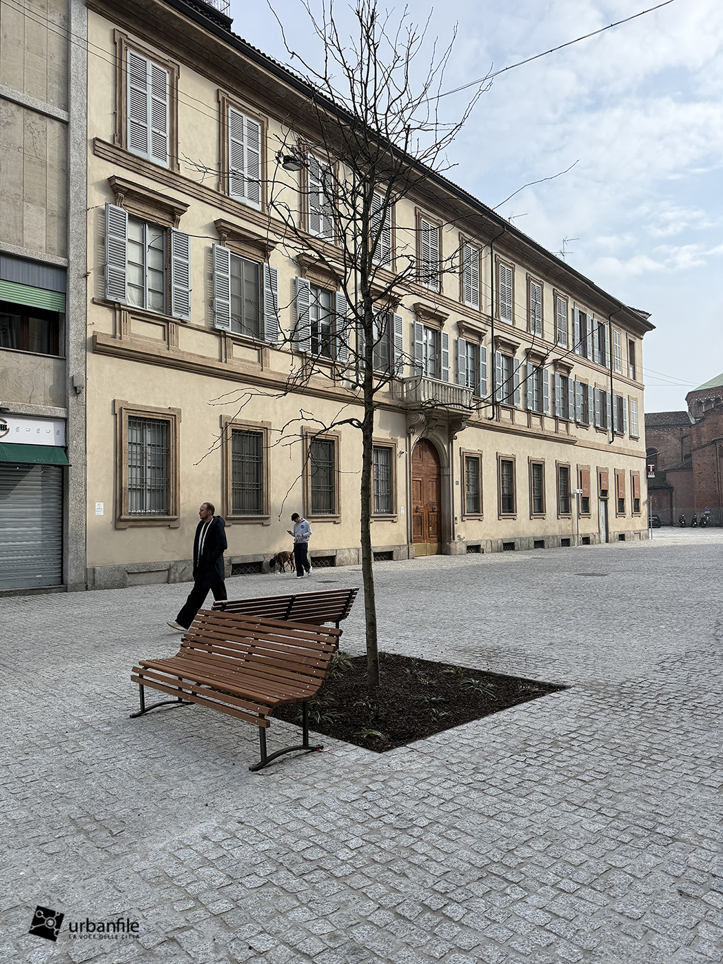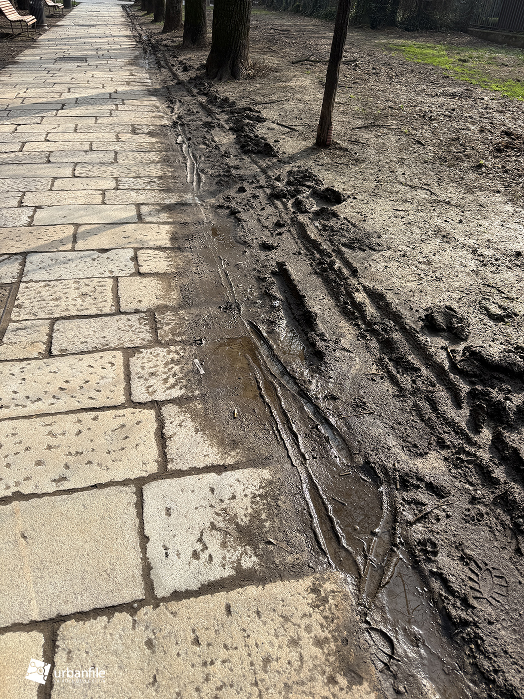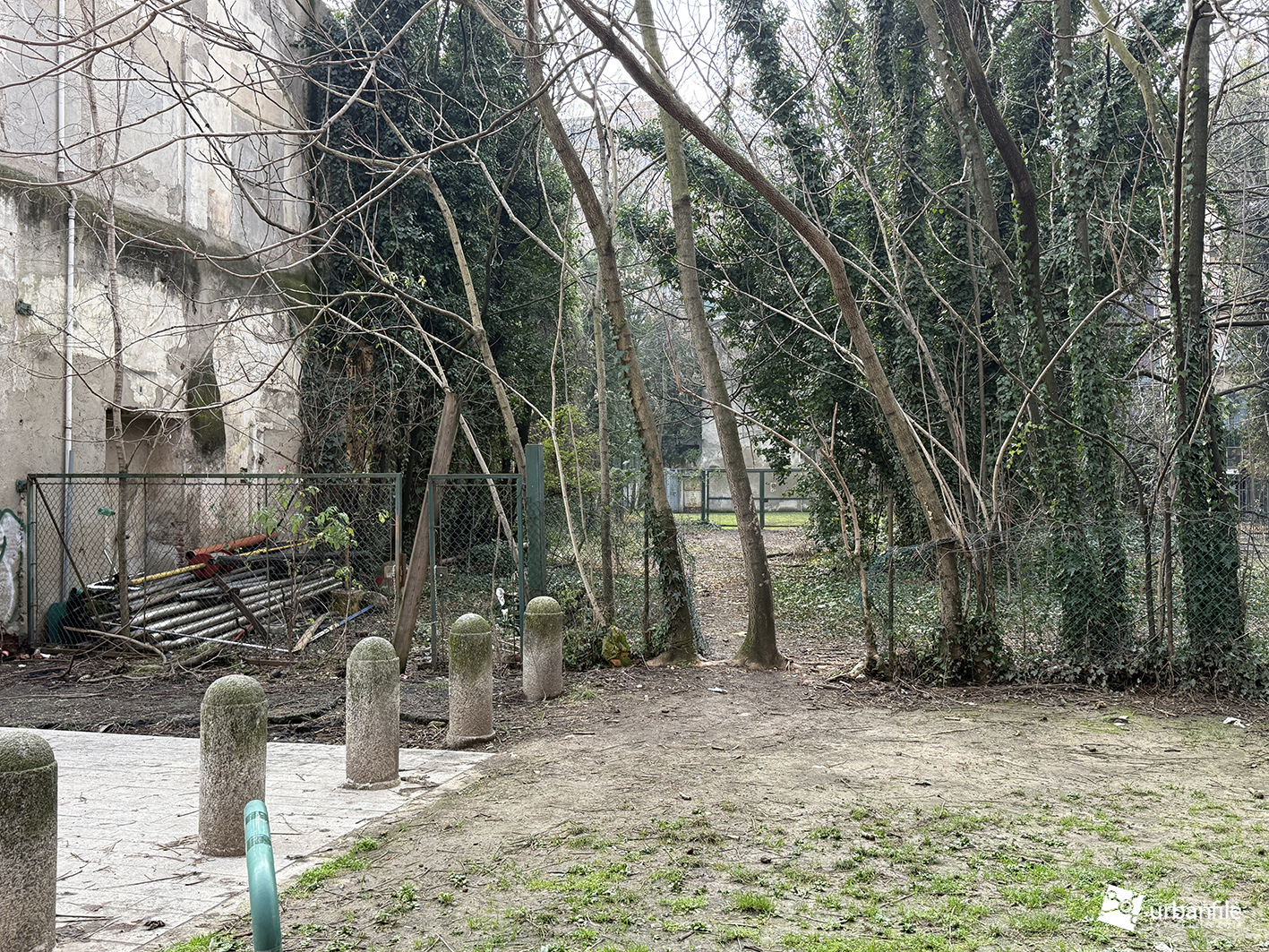 Purtroppo la pavimentazione in pietra è stata realizzata troppo a raso del terreno e, ogni volta che piove, si trasforma in un pantano. Speriamo venga risolto il problema, così come auspichiamo che venga ripiantato l’albero mancante. Ci auguriamo anche che il giardino venga riqualificato e recintato (è spesso luogo di bivacco) e che partano presto i lavori per il recupero del vecchio obitorio di via Sforza.