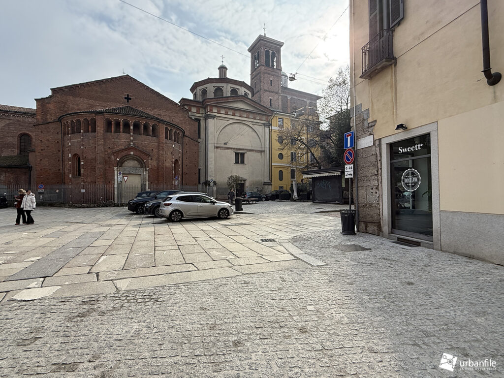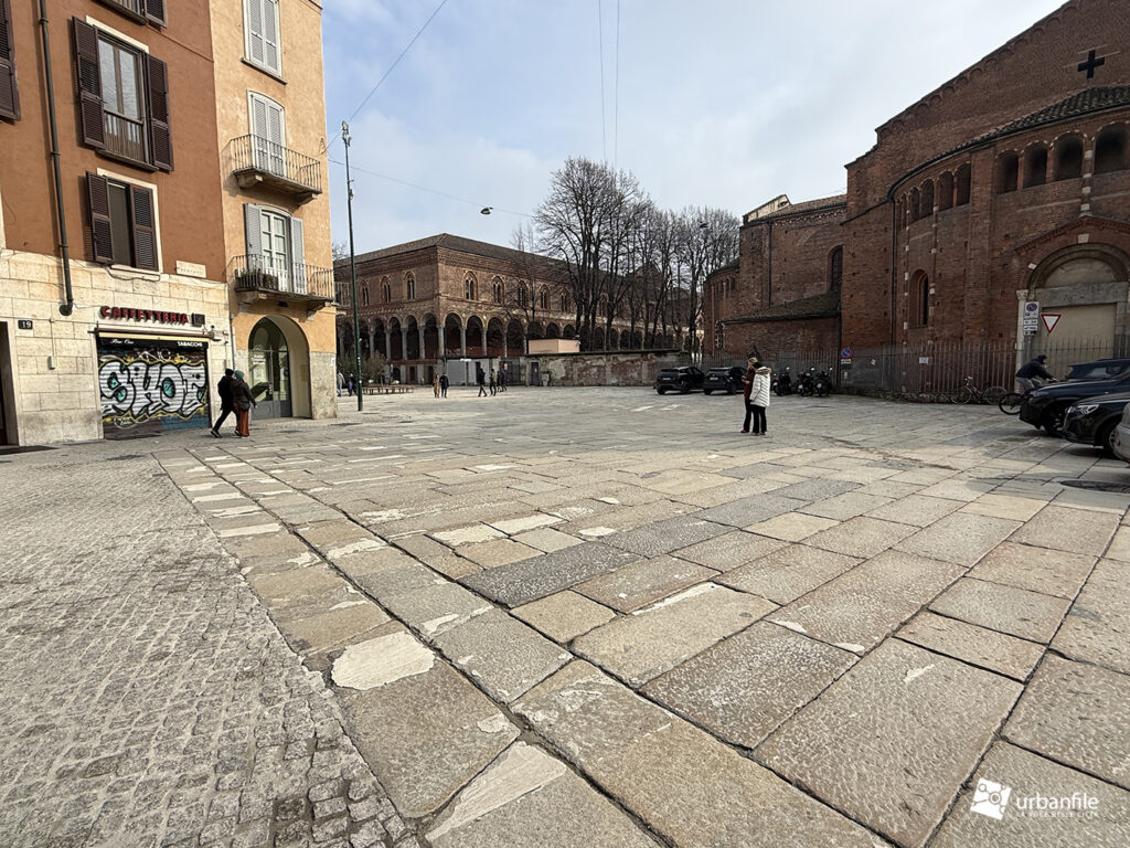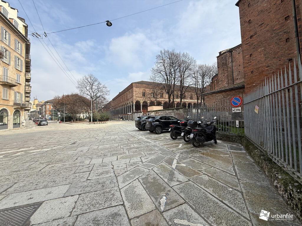 Terminata la passeggiata in via Pantano, si sbuca in largo Francesco Richini, dove il piazzale è stato riqualificato in parte, soprattutto sul lato di via Osti, del vicolo di Santa Caterina e lungo la strada carrabile che va da via Pantano a via Chiaravalle. La carreggiata automobilistica è stata pavimentata con cubetti di granito fino all’incrocio con via Chiaravalle. Lungo il marciapiede e l’aiuola-giardino centrale sono state installate panchine in legno.