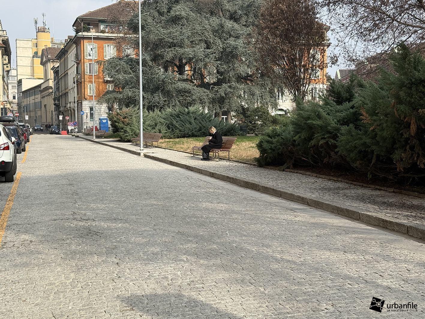 Al posto di un orrendo parcheggio sono state realizzate delle aiuole con cespugli e alberelli (peccato che, come sempre, al posto del prato i giardinieri comunali proseguano imperterriti con aiuole coperte da teli e corteccia, soluzione che onestamente detesto: col tempo, e con la scarsa manutenzione, diventeranno inevitabilmente brutte).
