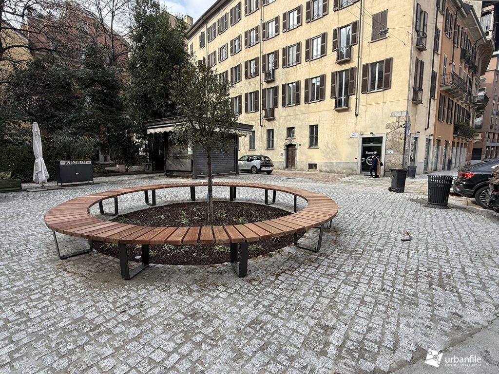 Sono stati inoltre piantati due nuovi alberi: uno nell’area prossima al vicolo di Santa Caterina e uno verso il giardinetto centrale, entrambi accompagnati da panchine disposte a cerchio. Resta però la speranza che venga eliminato il parcheggio selvaggio, che purtroppo persiste.