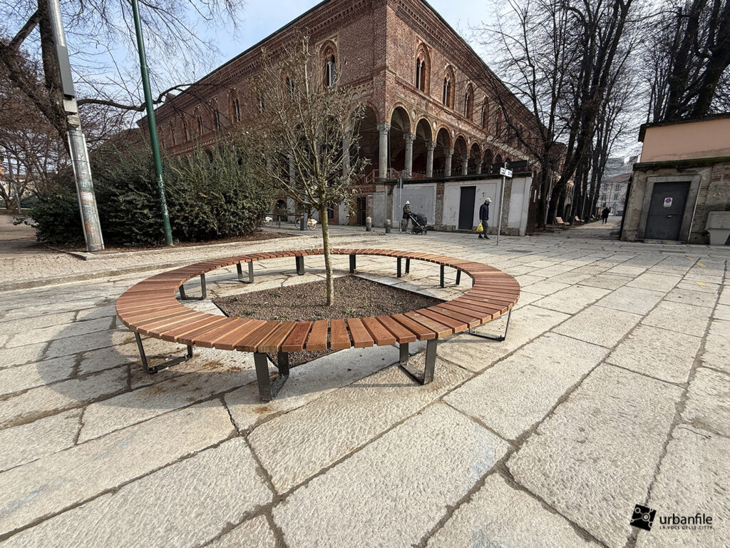 Il bellissimo passaggio del “Boschetto della Ca’ Granda”, che unisce largo Francesco Richini con la piazzetta della stazione M4 Sforza Policlinico, regala sempre immagini suggestive. Nelle scorse settimane sono state sostituite le panchine con modelli nuovi.