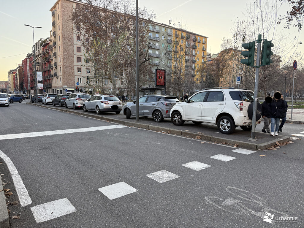 La stessa scena ritratta nelle foto, auto impunemente parcheggiate su uno spartitraffico, si può ammirare ogni giorno in via Melchiorre Gioia sotto i palazzi della Regione: non sono auto dei residenti e non sono lì perché mancano i parcheggi, posso assicurarlo. È solo arroganza impunita ed egoismo puro. E ottusità di polizia e amministratori.
