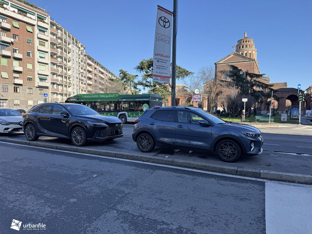Sì, perché nonostante i cartelli di divieto, nonostante le strisce blu e gialle, sono centinaia le auto parcheggiate ovunque sia possibile: senza regole, senza rispetto e senza che i vigili elevino multe. Così, ogni volta che mi capita di passare, ad esempio, in viale Argonne, proprio in piazza Acquabella, davanti all’enorme Basilica dei Santi Nereo e Achilleo, trovo sempre la stessa scena. C’è un tratto di spartitraffico abbastanza largo da sembrare un inutile marciapiede (che in teoria i pedoni non potrebbero nemmeno utilizzare) e che diventa puntualmente — ma dico puntualmente — un perfetto parcheggio abusivo. Un classico parcheggio selvaggio, come si suol dire.