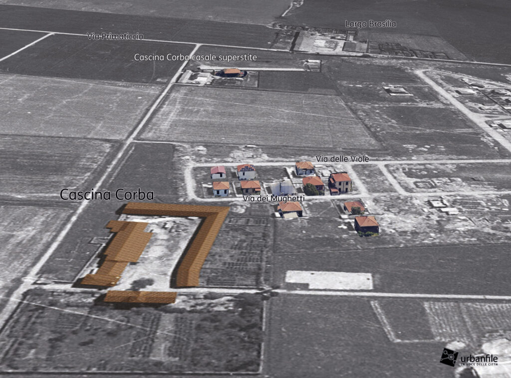 La Cascina Corba, nota anche come cascinale della Corba, era un articolato complesso di edifici rurali sviluppatosi a partire dal Cinquecento. Dalla fine del Seicento vi si aggiunse l’oratorio di San Carlo alla Corba. L’attività principale dei residenti sembra fosse la fabbricazione di cesti in vimini. La proprietà passò dall’Abbazia di San Vittore Grande agli Istituti Ospedalieri, che nel 1927 la cedettero al Comune di Milano. Nonostante ciò, il complesso non fu salvato: sebbene il piano regolatore ne prevedesse la destinazione a spazi pubblici e attività collettive, negli anni Cinquanta gran parte della cascina venne demolita per fare spazio alle villette a schiera e ai palazzi del Quartiere dei Fiori al Primaticcio. L’unica ala superstite è proprio l’edificio oggi oggetto del bando comunale.