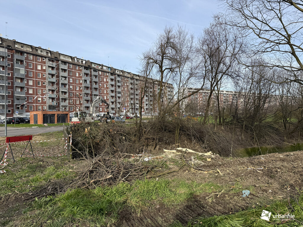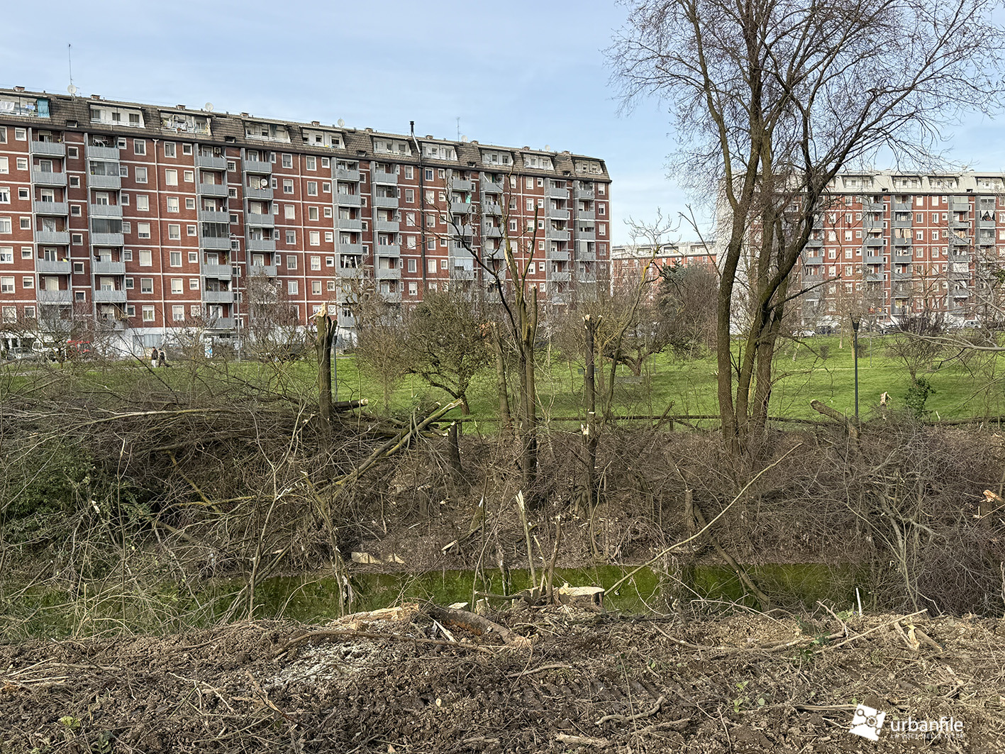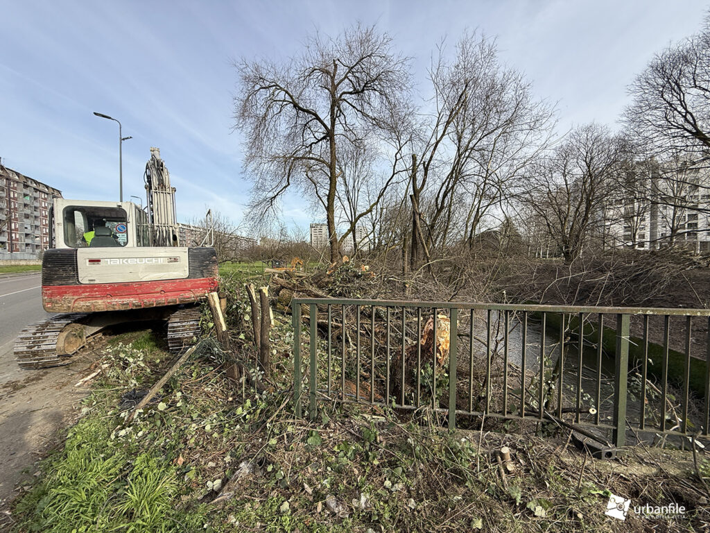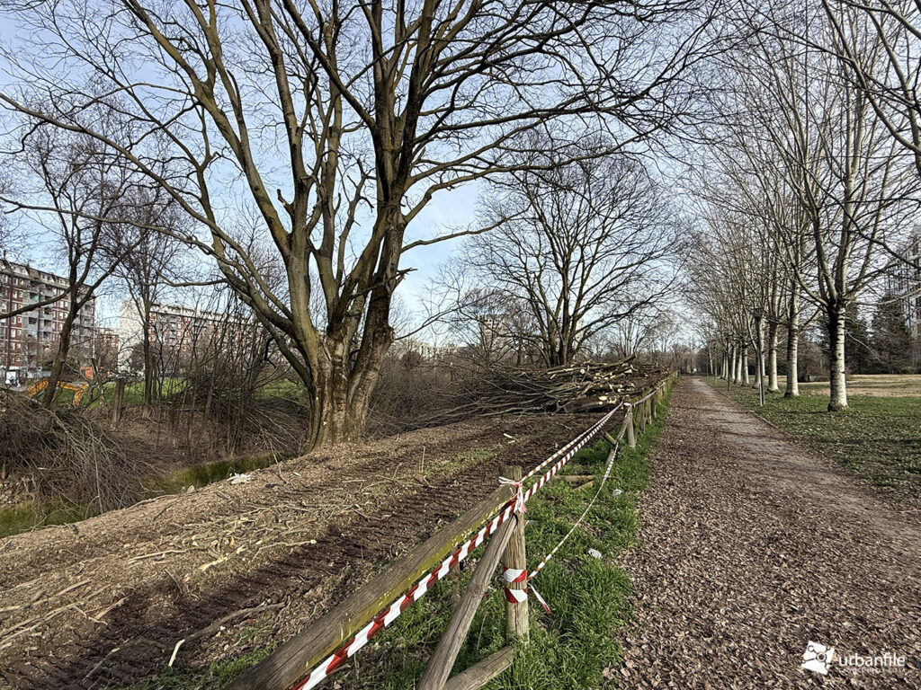 Febbraio 2026. Purtroppo esistono interventi poco piacevoli, ma indispensabili per prevenire possibili disastri. È quanto sta accadendo alla Barona, al margine del quartiere Sant’Ambrogio, nel cuore del Parco della Cascina Bianca, dove scorre il canale artificiale dello Scolmatore dell’Olona.