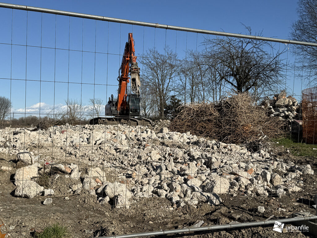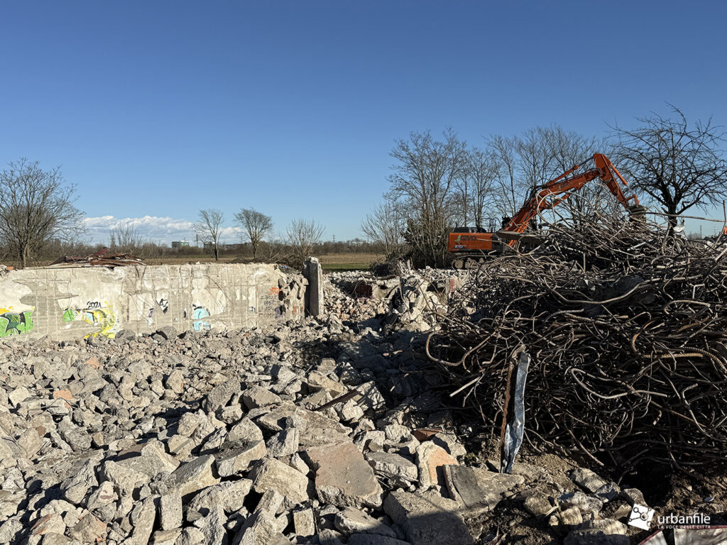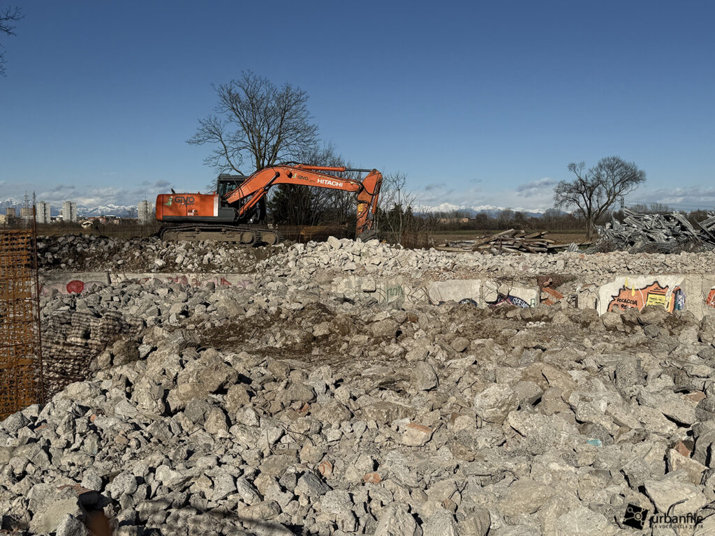 In questi giorni sono in corso le demolizioni dell’edificio dell’ex Campo da Tiro al Volo di Macconago. Si trattava di una struttura in cemento armato – probabilmente con presenza di amianto – realizzata a metà degli anni Settanta, con le relative postazioni di tiro, ai margini dei campi coltivati e del Parco Agricolo Sud Milano.