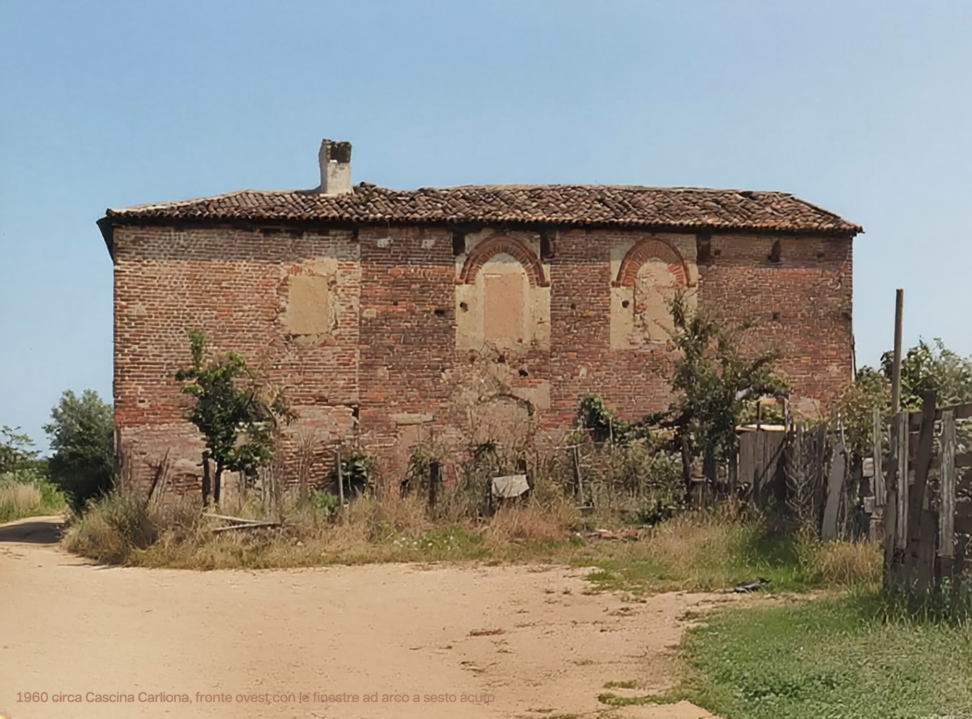 L’edificio a “L”, a due piani, ospitava le abitazioni lungo il lato occidentale e parte di quello settentrionale, oltre a una stalla con soprastante fienile. Il braccio occidentale rappresentava la porzione più antica: vi si riconoscevano finestre ad arco acuto con ghiera in cotto e, sulla testata sud, un arco della medesima forma — tracce evidenti di un edificio tardo-gotico del XV secolo.
