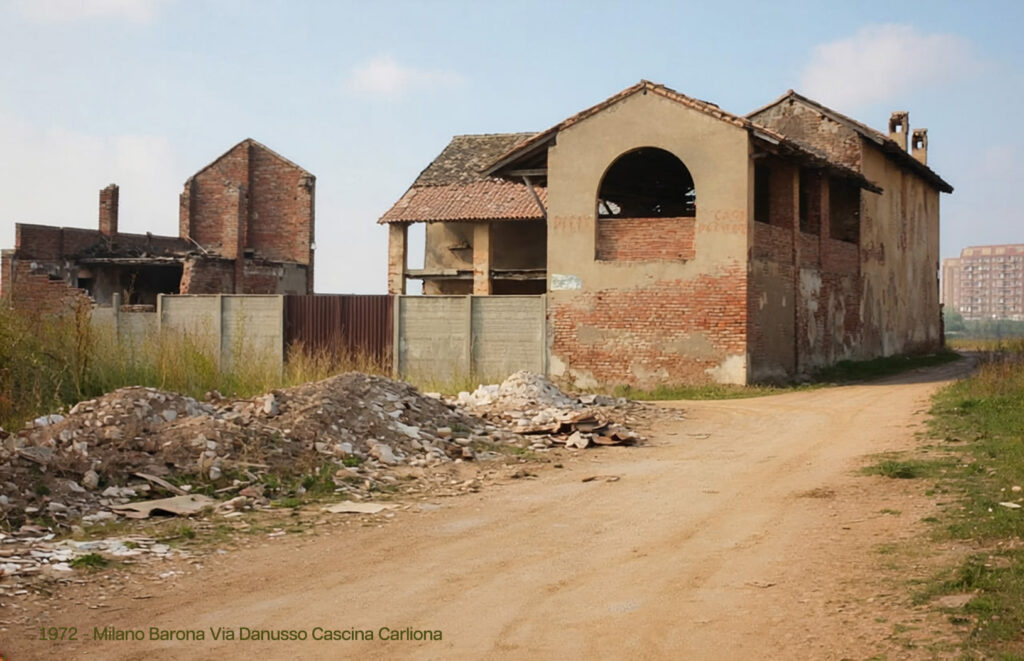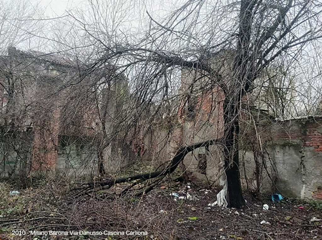 - Barona, Cascina Carliona, Quartiere Sant’Ambrogio, Scolmatore dell’Olona, Carlione, roggia Carlione, roggia Carlioncino, via Boffalora, via Danusso, cascina, rovina, restauro,