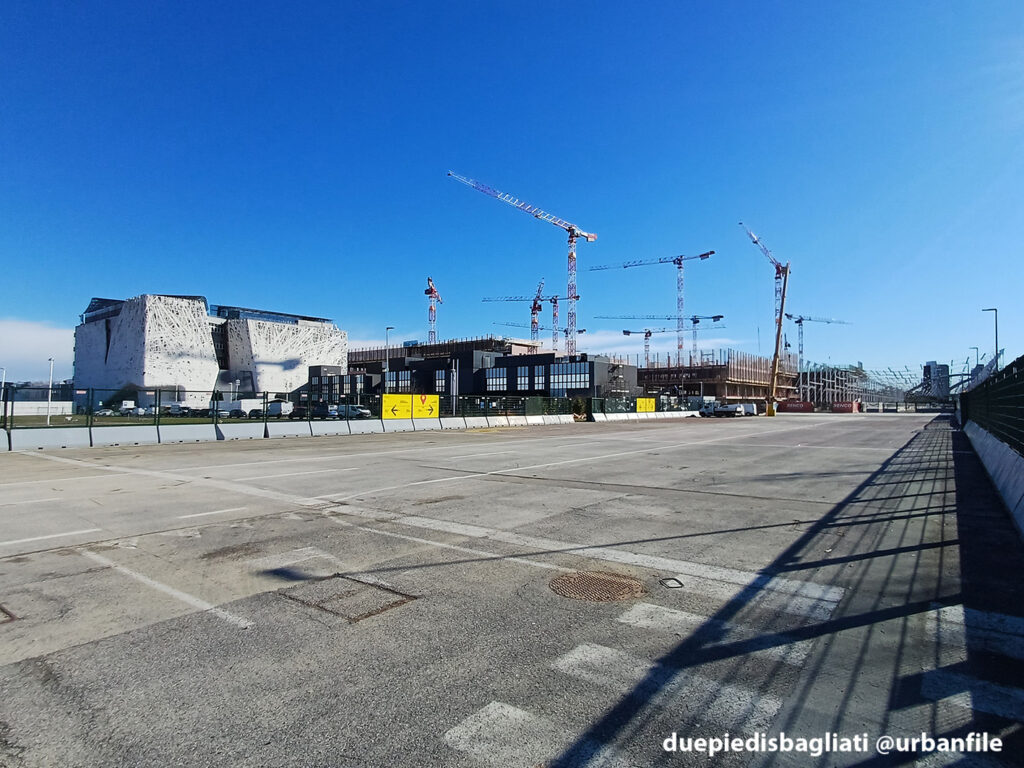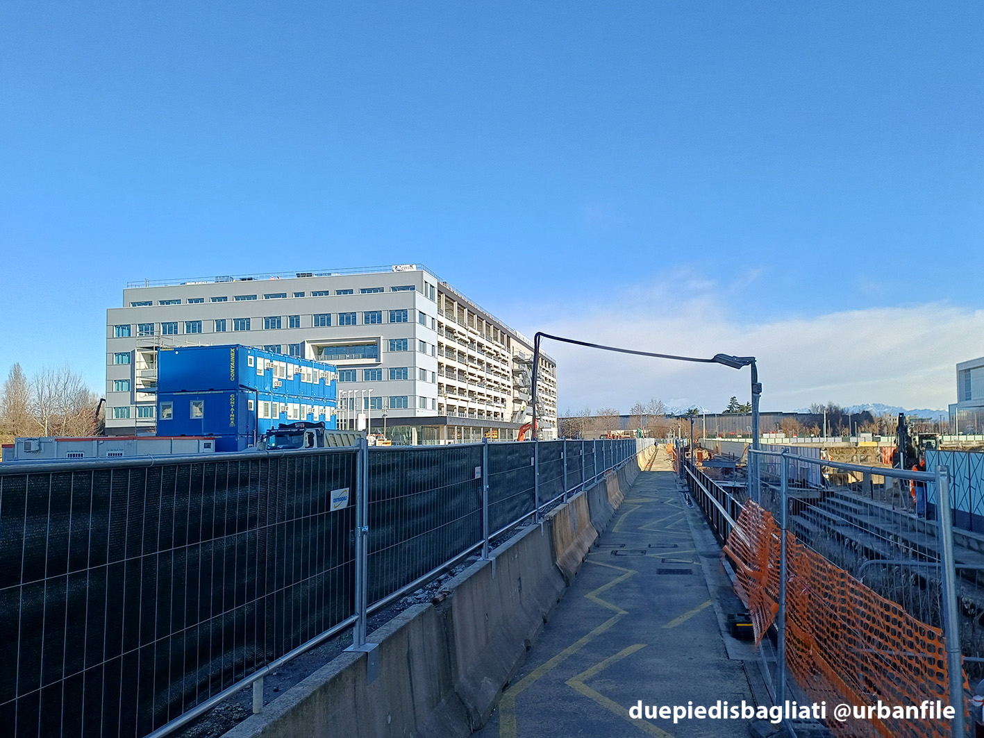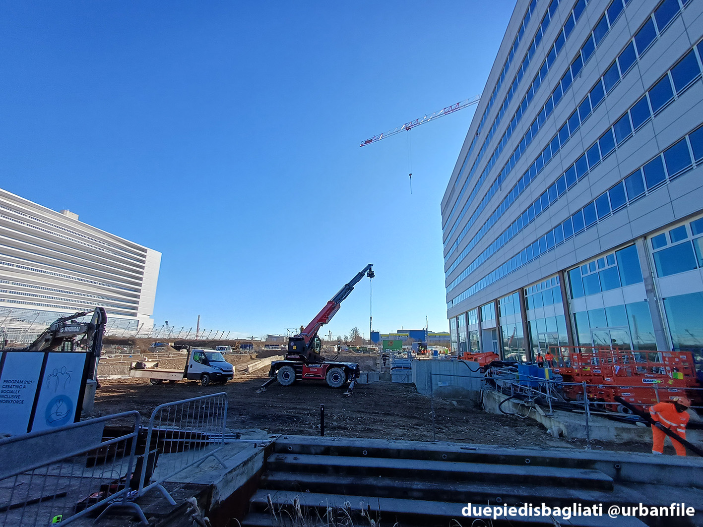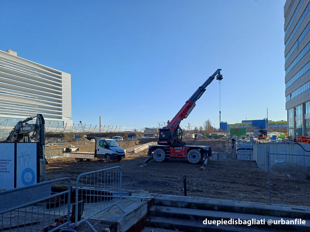 Febbraio 2026. Nuovo aggiornamento fotografico dai cantieri che si trovano nell’area del nuovo distretto di MIND spartito un po’ nel Comune di Rho e nel territorio di Roserio. West-Gate è il settore che si trova nella parte di Rho.