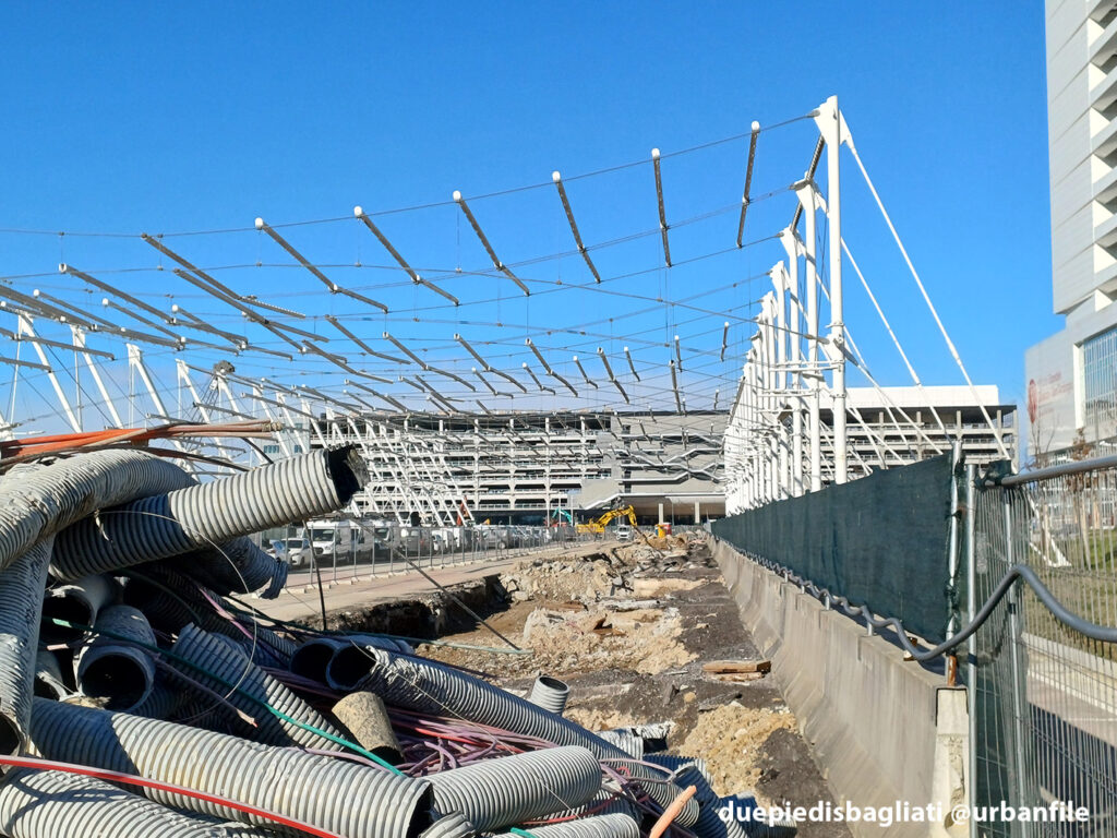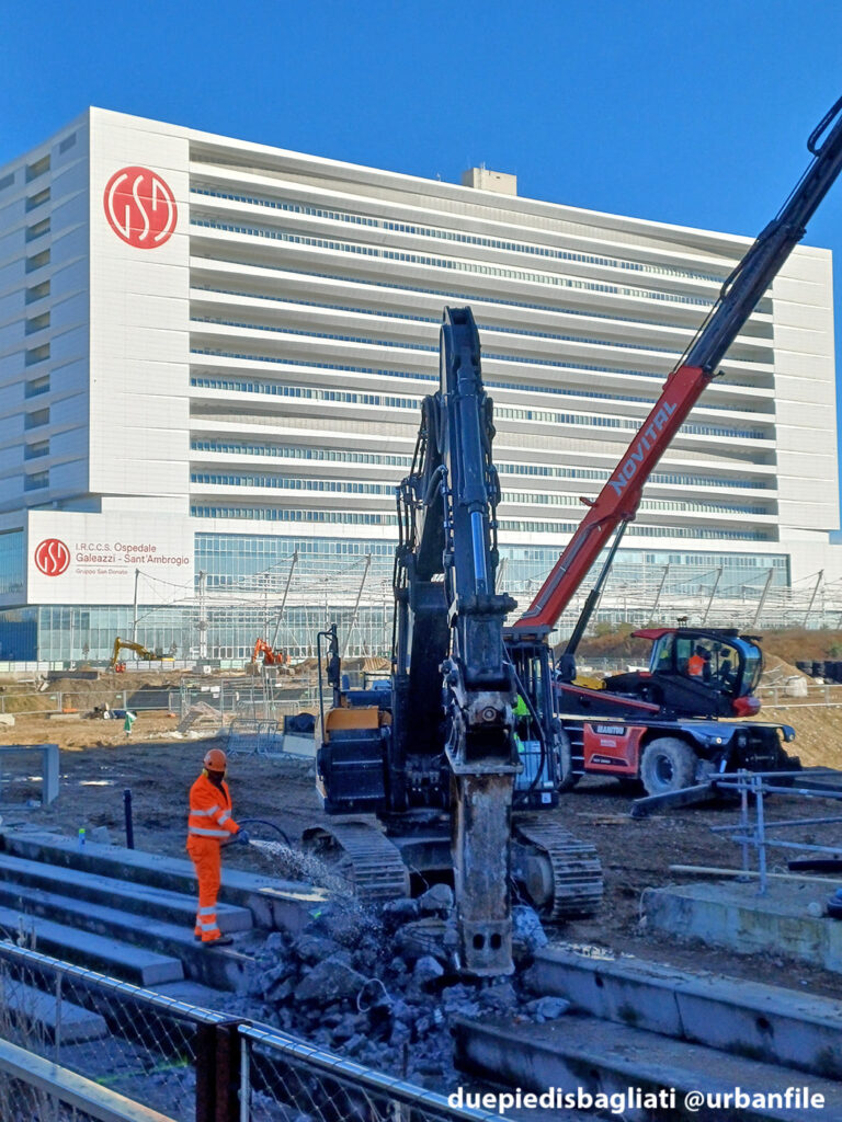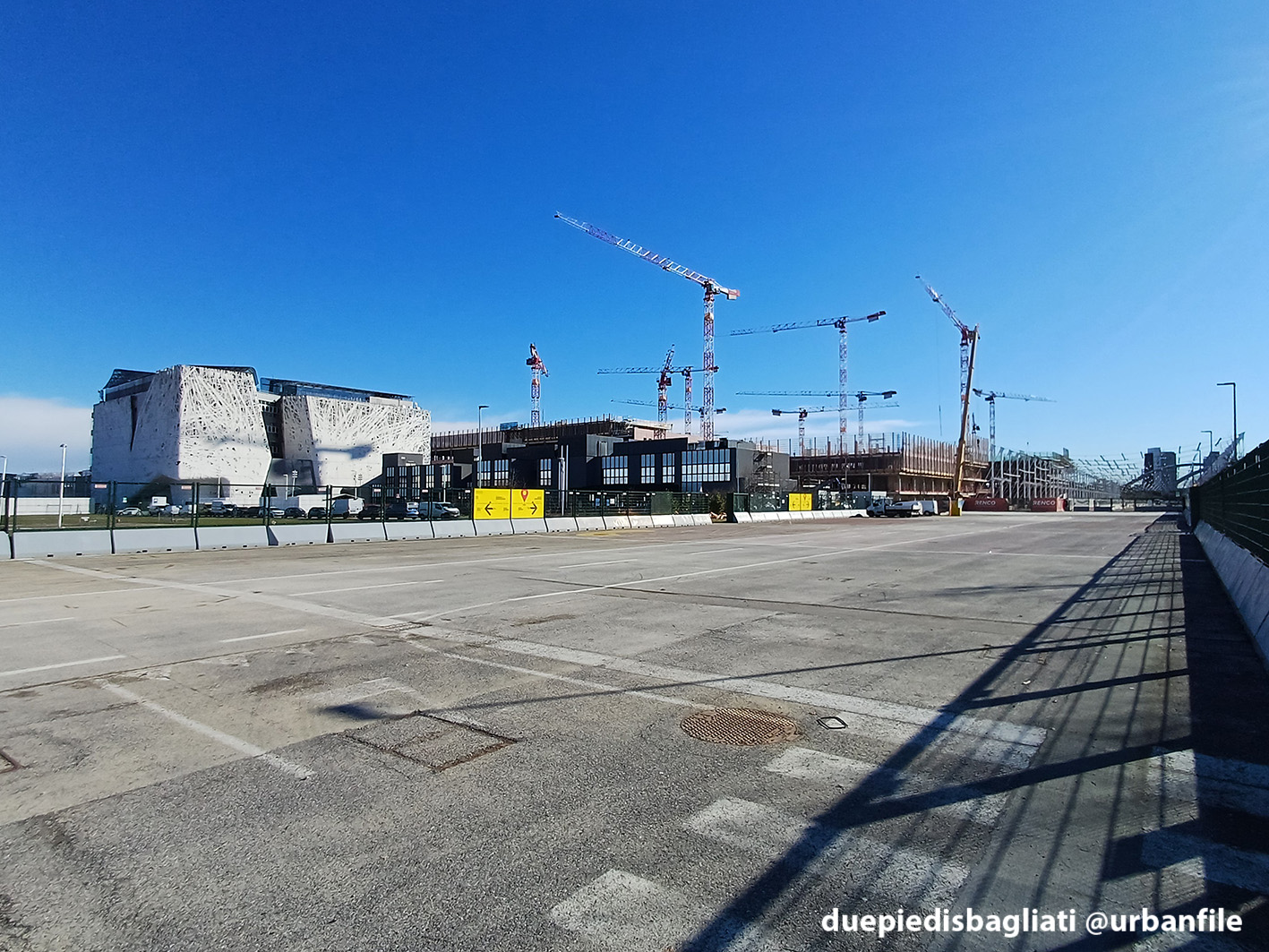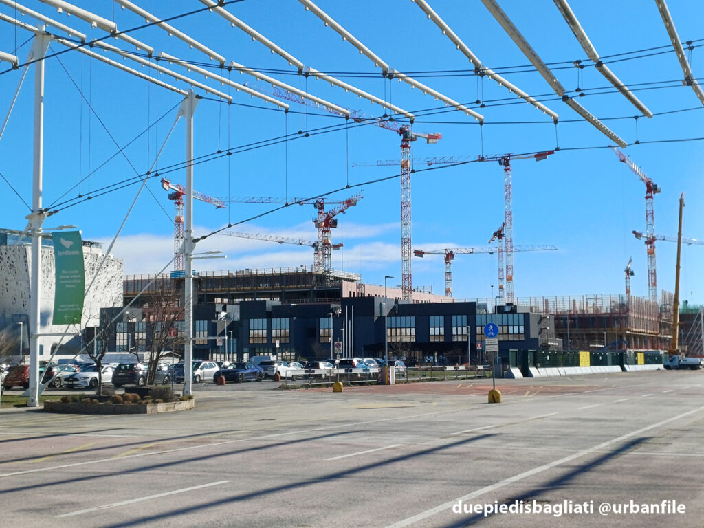 Febbraio 2026. Nuovo aggiornamento fotografico dai cantieri che si trovano nell’area del nuovo distretto di MIND spartito un po’ nel Comune di Rho e nel territorio di Roserio. West-Gate è il settore che si trova nella parte di Rho.
