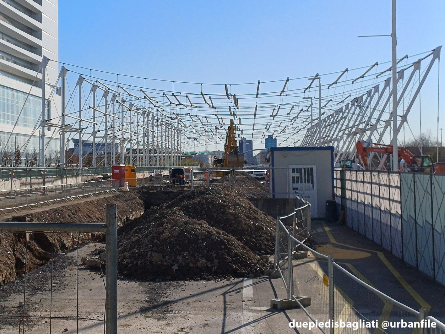 Qui di seguito le foto che mostrano il cantiere di Horizon (Zenith deve ancora essere avviato) ormai in dirittura d’arrivo. Prima però vediamo l’area d’accesso dalla stazione dei treni e della metropolitana dove sono in corso le demolizioni delle vecchie strutture d’accoglienza per Expo 2015. Sullo sfondo si vede il cantiere per il palazzo di Molo.