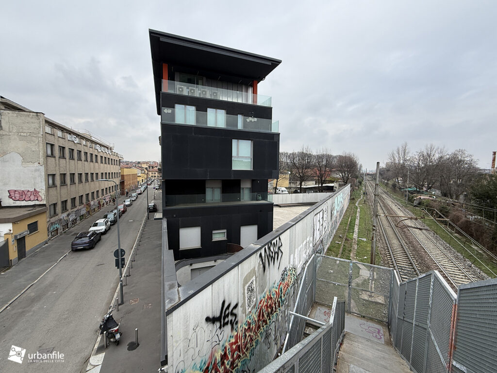 Sempre in via Comune Antico ma al civico 36, a ridosso della ferrovia e al ponticello pedonale per il collegamento con Greco storica, si trova un edificio ormai completato dal 2019.