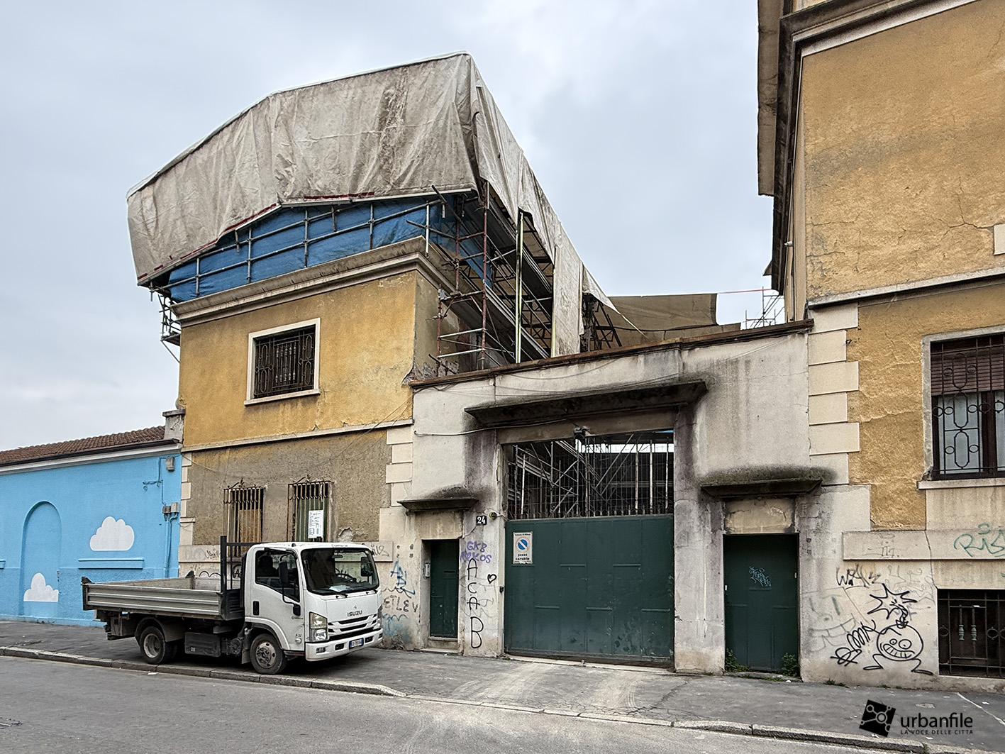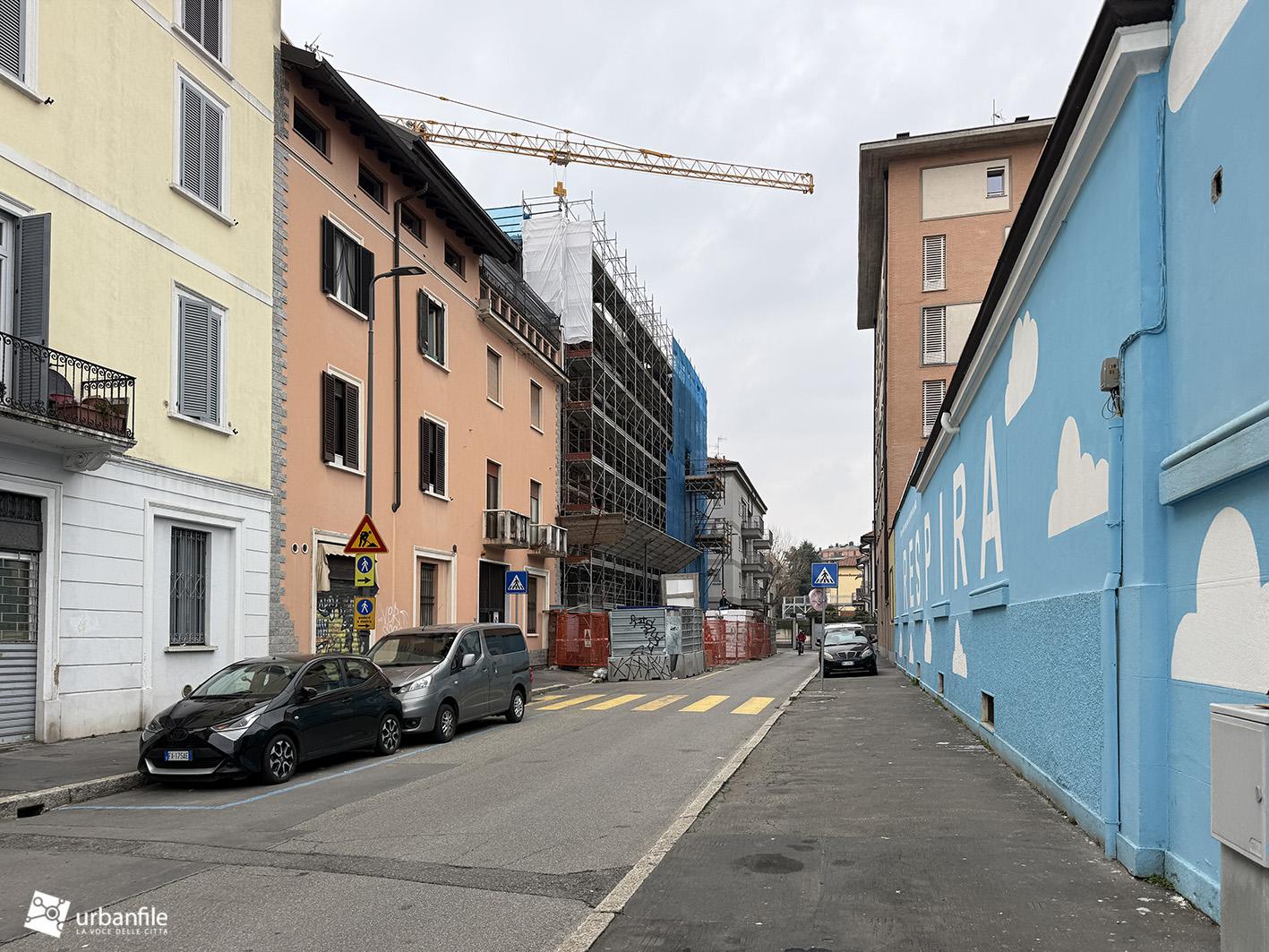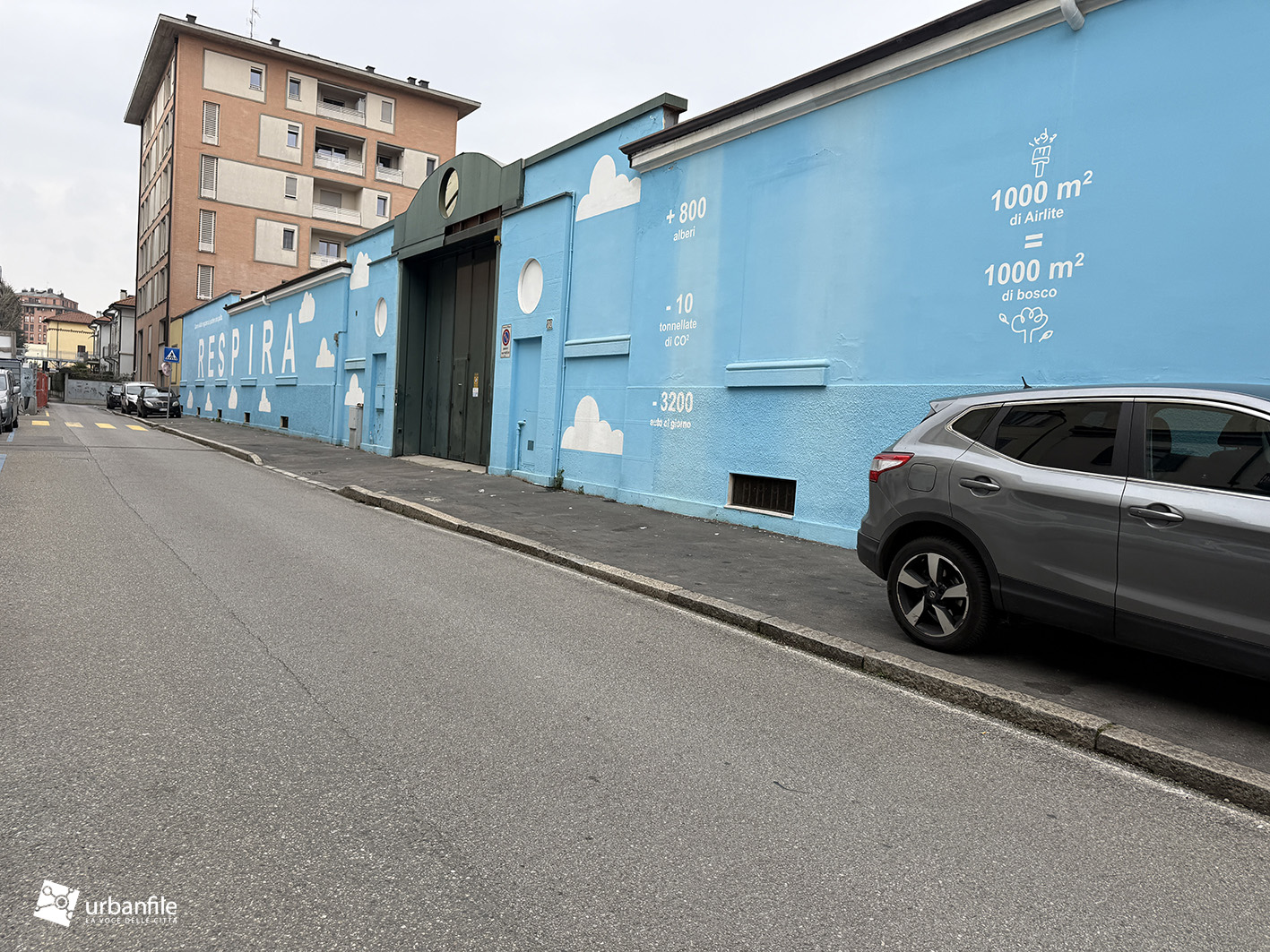 Presentato nel 2023, il progetto che vede la realizzazione di un complesso residenziale in via Ugolini 30 deve ancora vedere l’avvio. Per ora il muro di cinta è stato decorato di un bel azzurro e una scritta che grida: Respira.